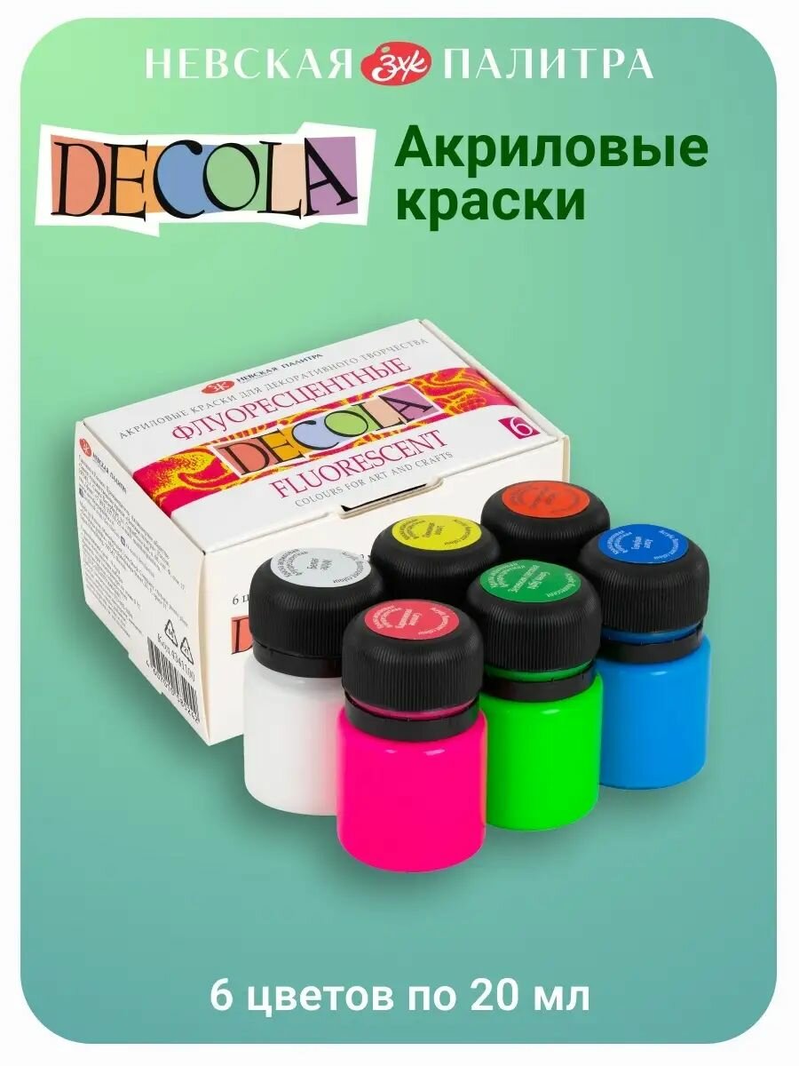 Краски акриловые флуоресцентные Невская палитра DECOLA, 6 цветов по 20 мл 4341100 информация: