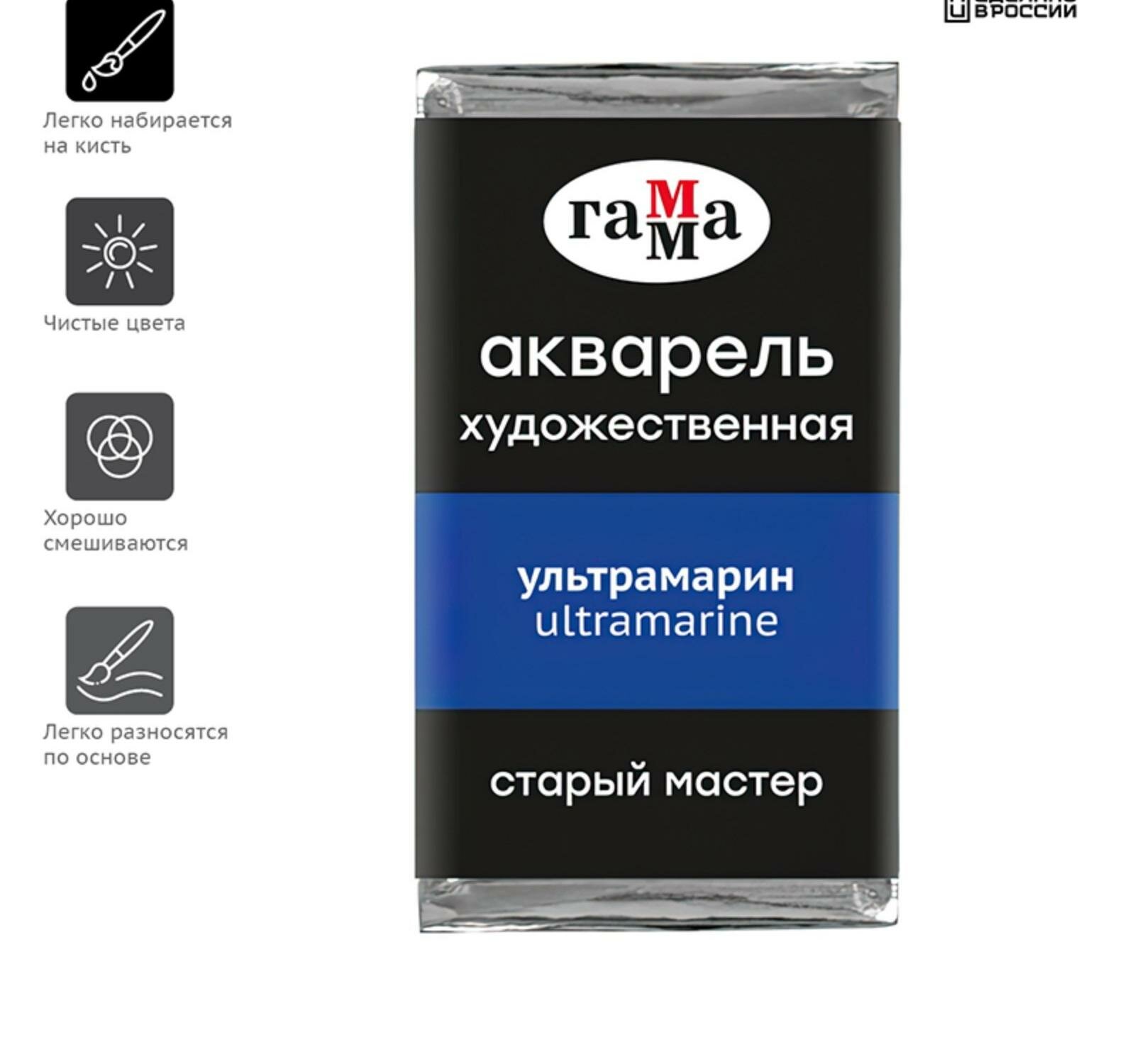 Акварель художественная в кювете 2,6 мл, Гамма "Старый Мастер", ультрамарин, 200521417 информация: