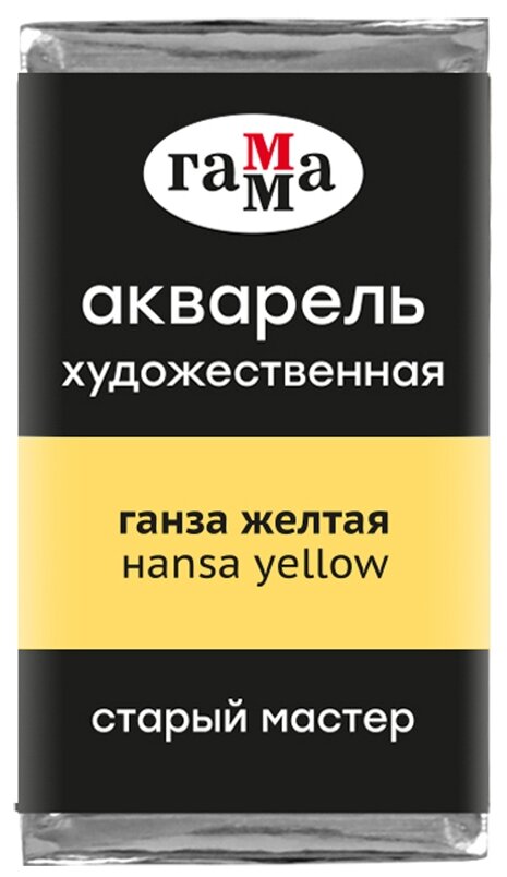 Краска акварельная художественная Гамма "Старый Мастер", ганза желтая, 2,6мл, кювета (200521134) 454 ₽
