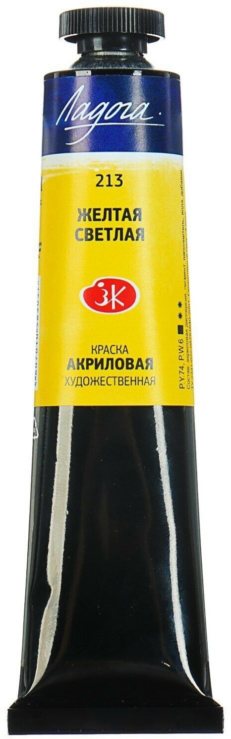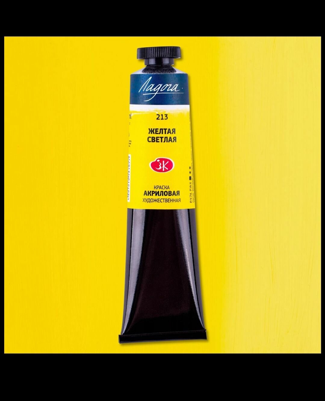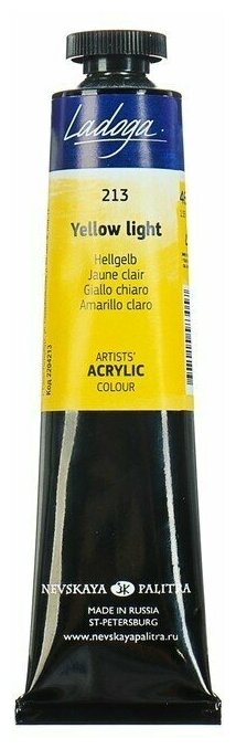 Краска Акриловая Художественная "Ладога" 46 мл. Желтая Светлая информация: