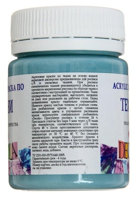 Акриловая краска для ткани и одежды Decola серо-голубая 50 мл информация: