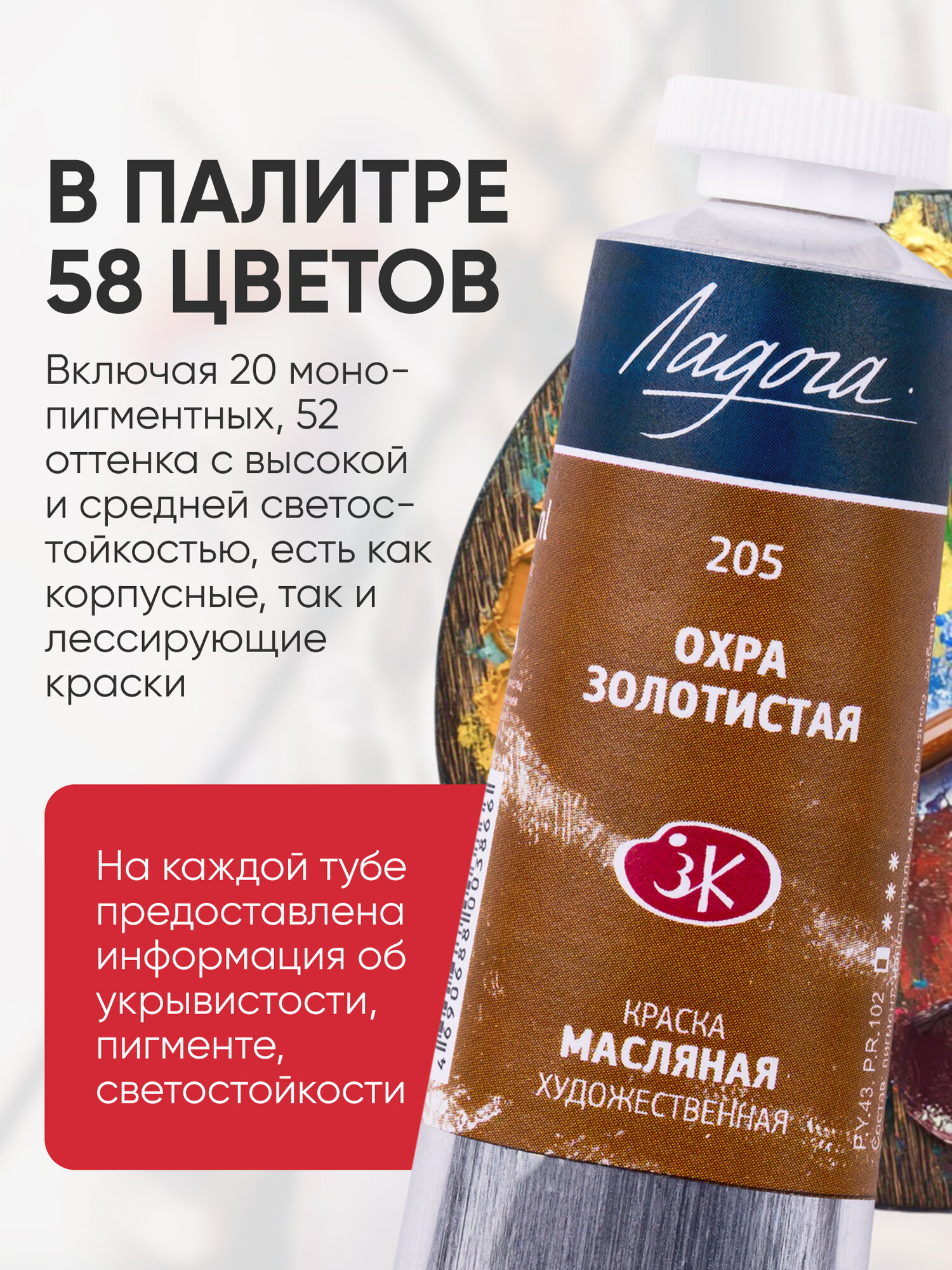 Масляная краска для рисования Ладога охра золотистая 205 в тубе 46 мл информация: