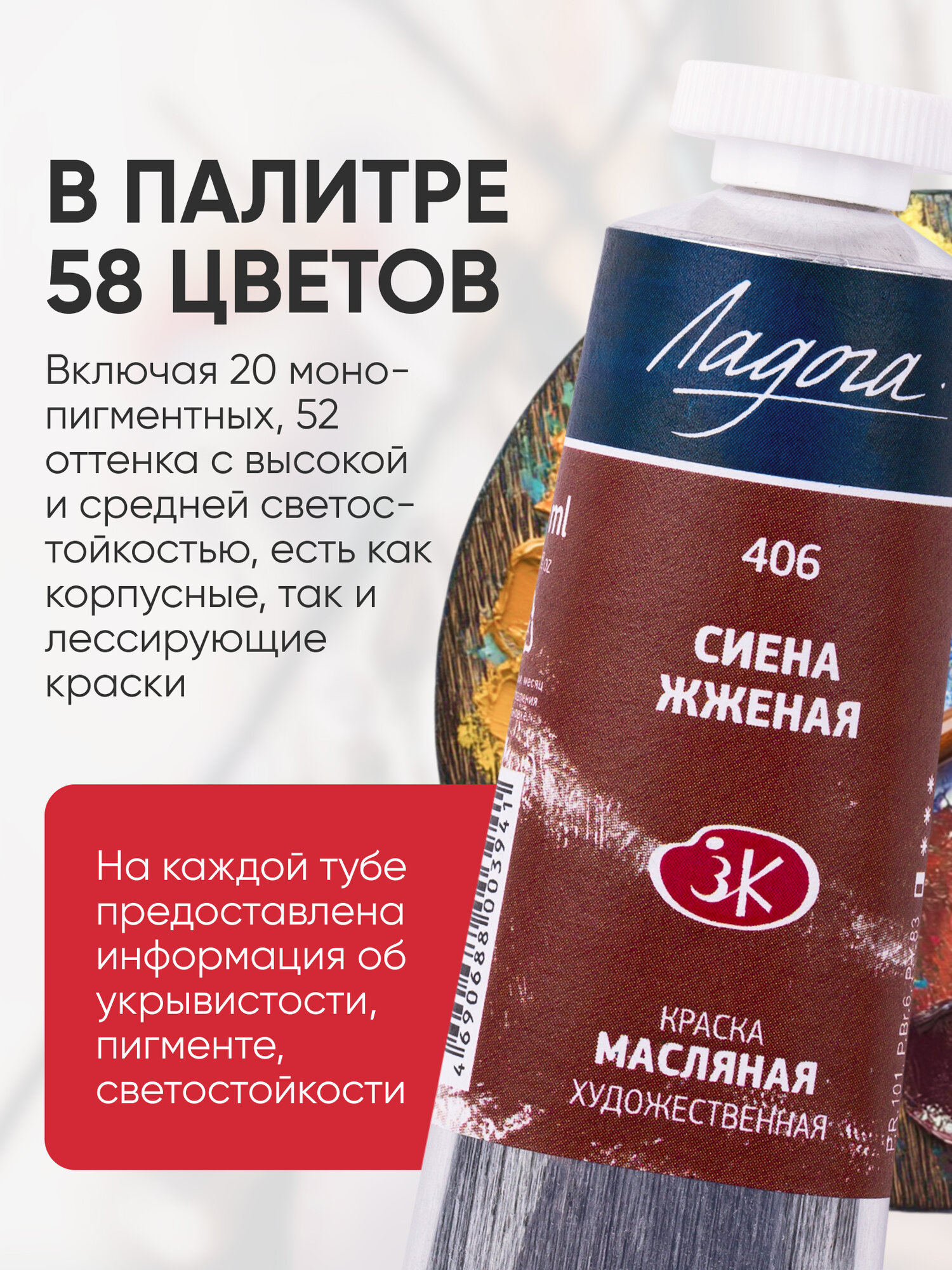 Масляная краска для рисования Ладога сиена жженая 406 в тубе 46 мл информация: