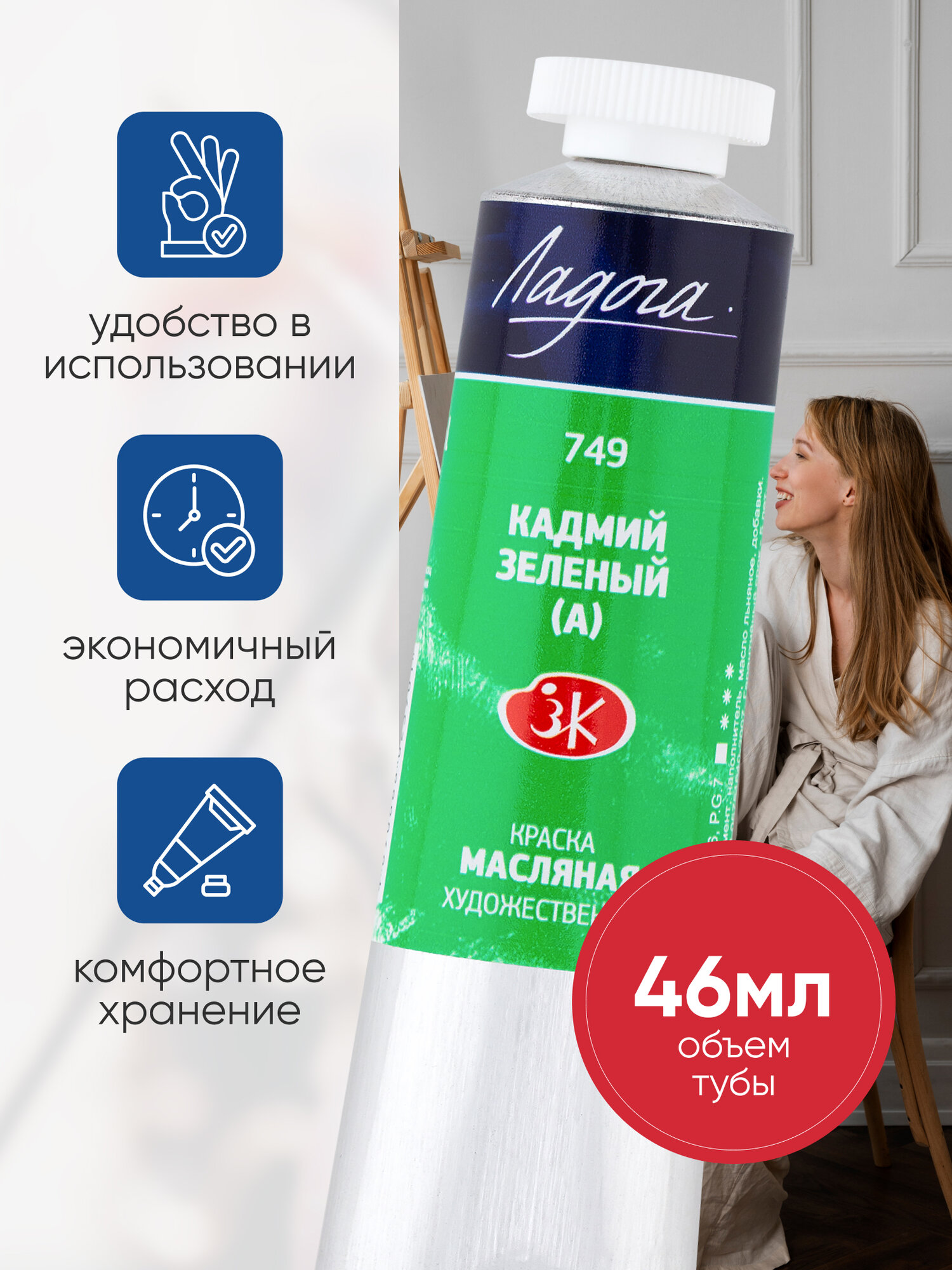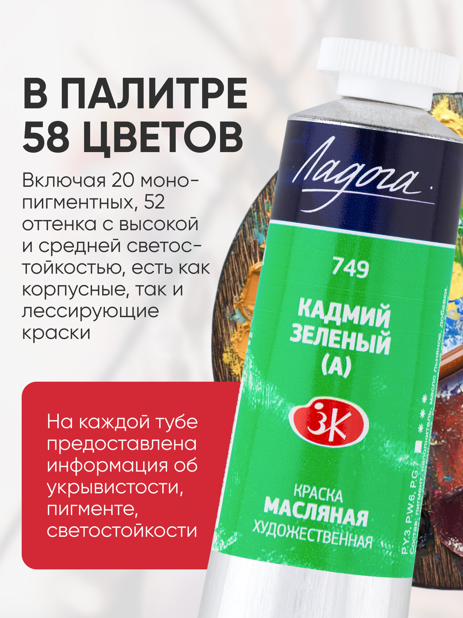 Масляная краска для рисования Ладога кадмий зеленый (А) 749 в тубе 46 мл информация: