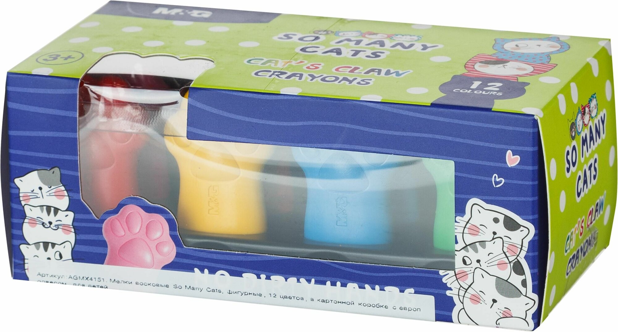 Мелки восковые для рисования M&G So Many Cats, набор 12 цветов, фигурные информация: