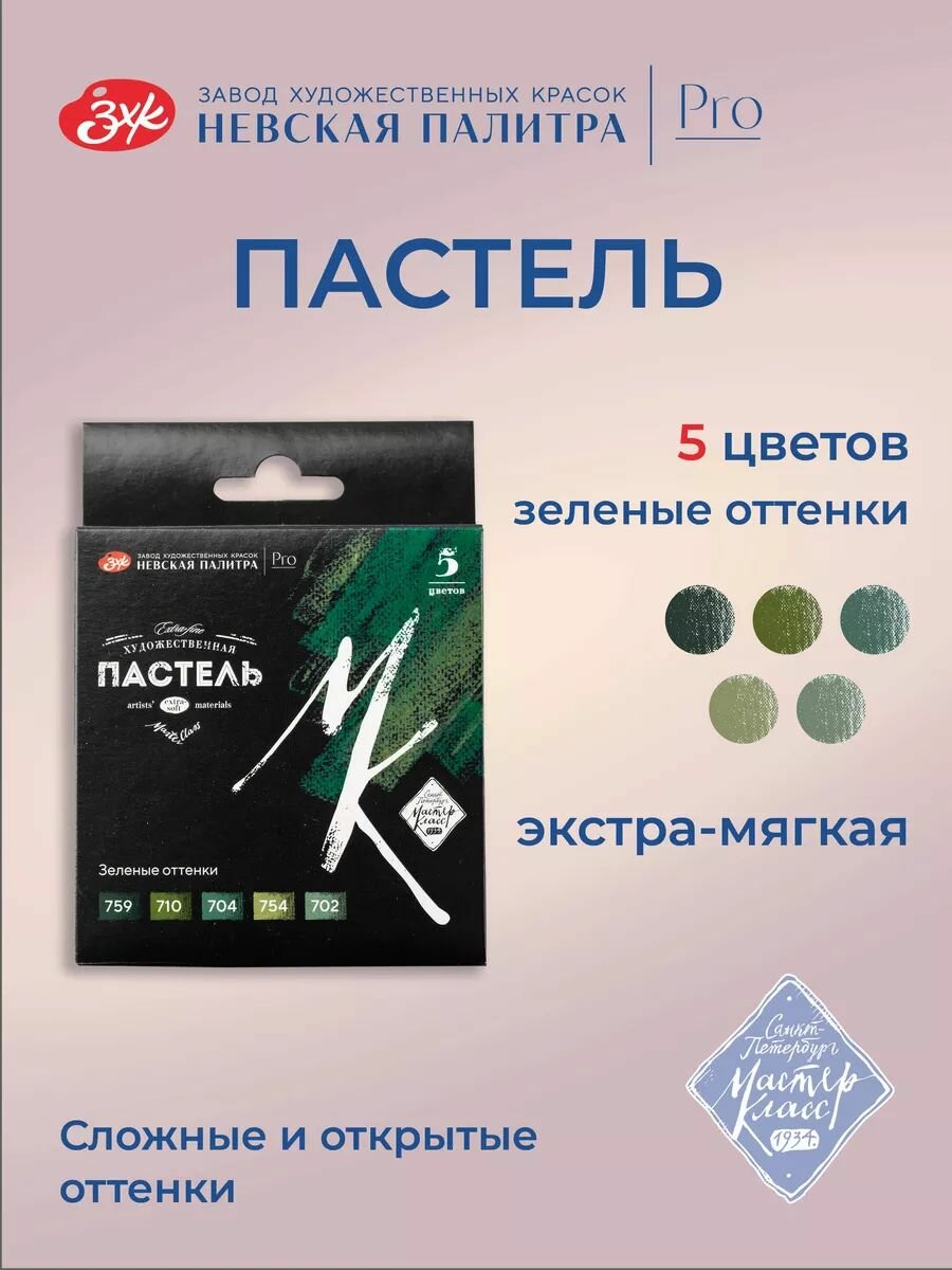 Пастель сухая художественная Невская палитра Мастер-Класс, 5 цветов, зеленые оттенки 2531422203 информация: