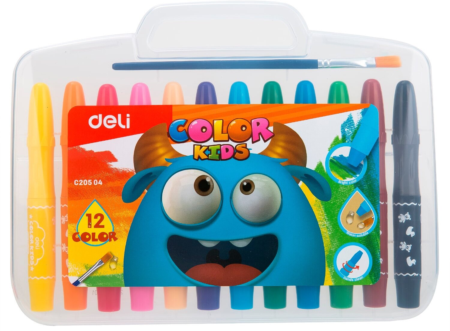 10 цен на Гелевые мелки Deli EC20504 Color Kids 12цв. пластиковый контейнер
