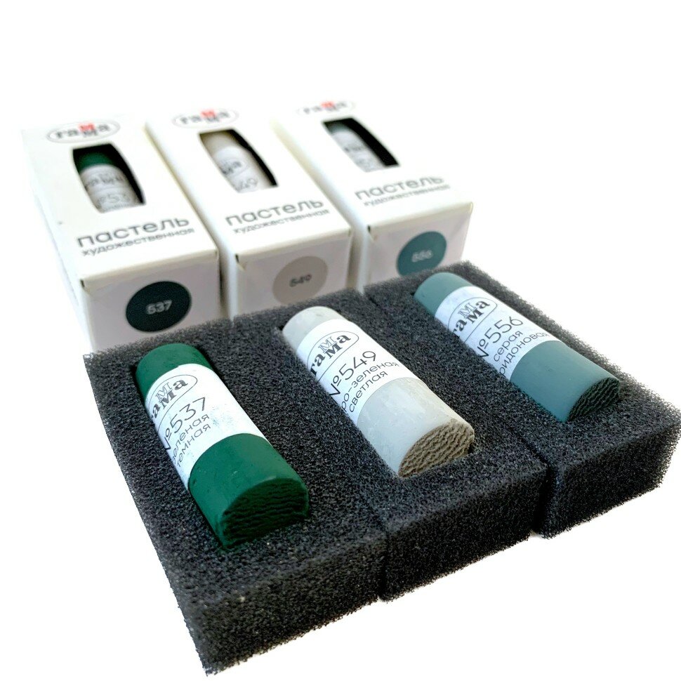 Комплект 3 оттенка Зелёного, пастель художественная Гамма, артикул 210823-537.549.556 информация:
