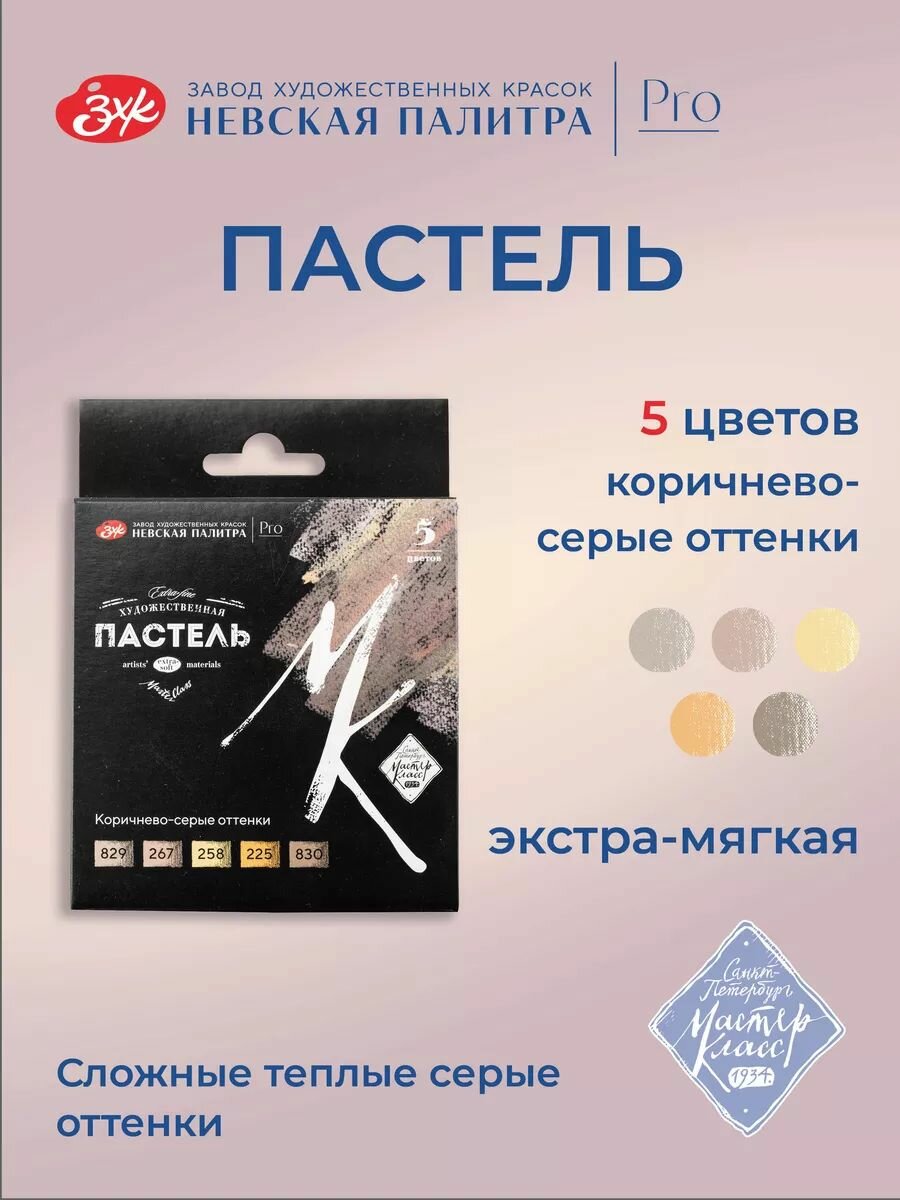 Пастель сухая художественная Невская палитра Мастер-Класс, 5 цветов, коричнево-серые оттенки 2531422204 информация: