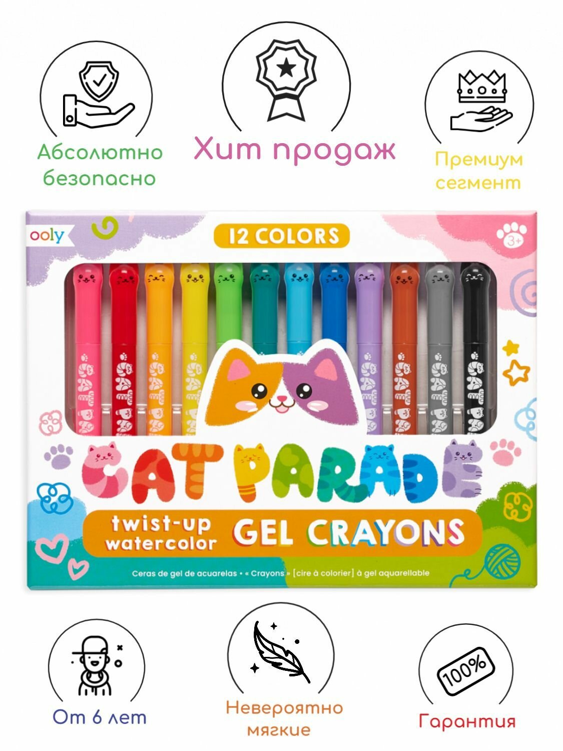 Отзывы на Набор механических цветных акварельных гелевых мелков OOLY Котята; 12 цветов