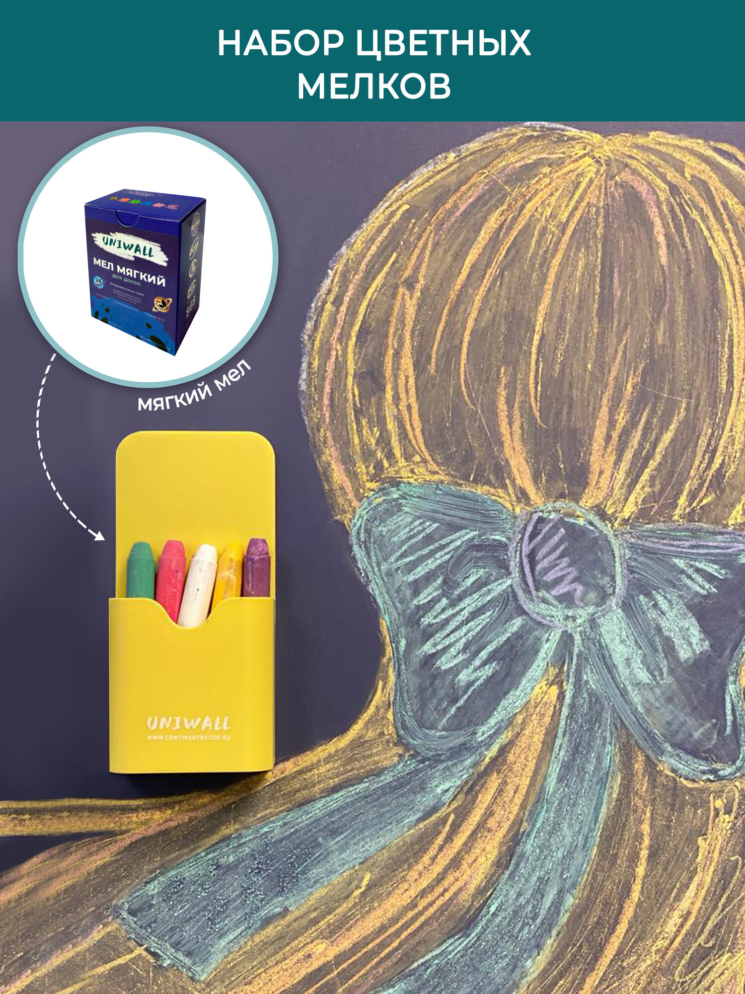 Мел цветной для доски, набор 24 шт, Uniwall информация: