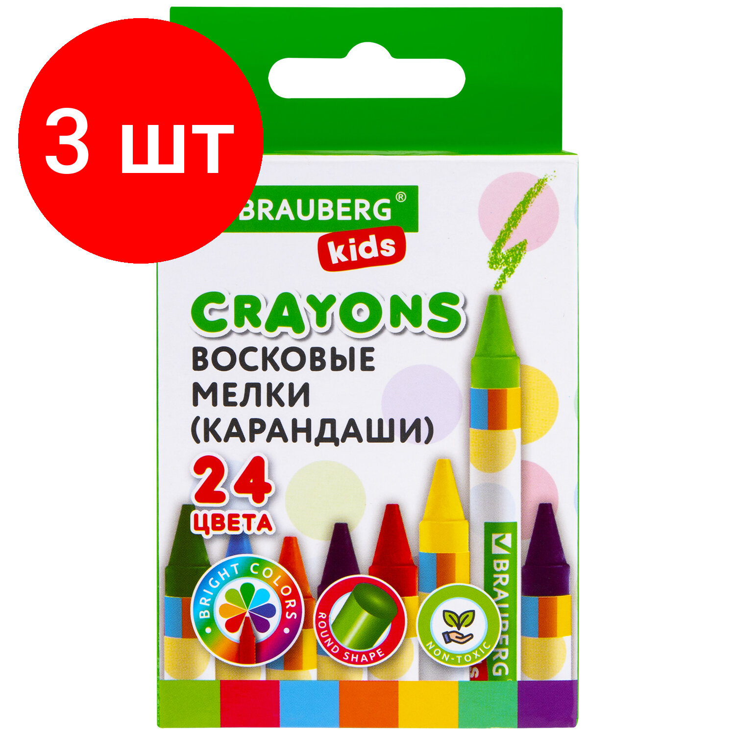 10 цен на Комплект 3 шт, Восковые мелки BRAUBERG KIDS, набор 24 цвета, 271697
