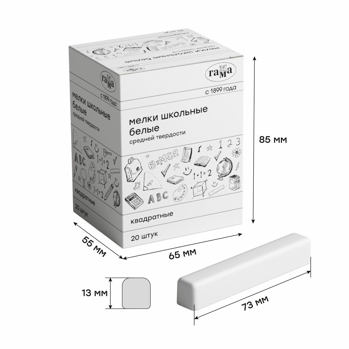 Мел белый Гамма 20 штук, средней твердости, квадратный информация: