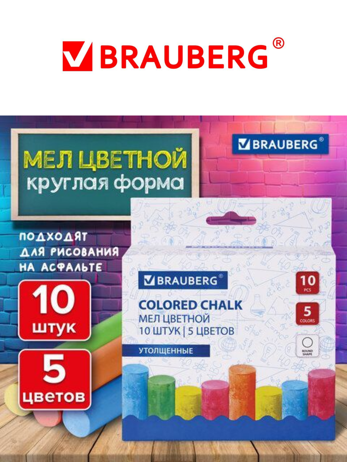 10 цен на Мел цветной BRAUBERG, набор 10 шт, для рисования на асфальте, круглый, арт. 223556