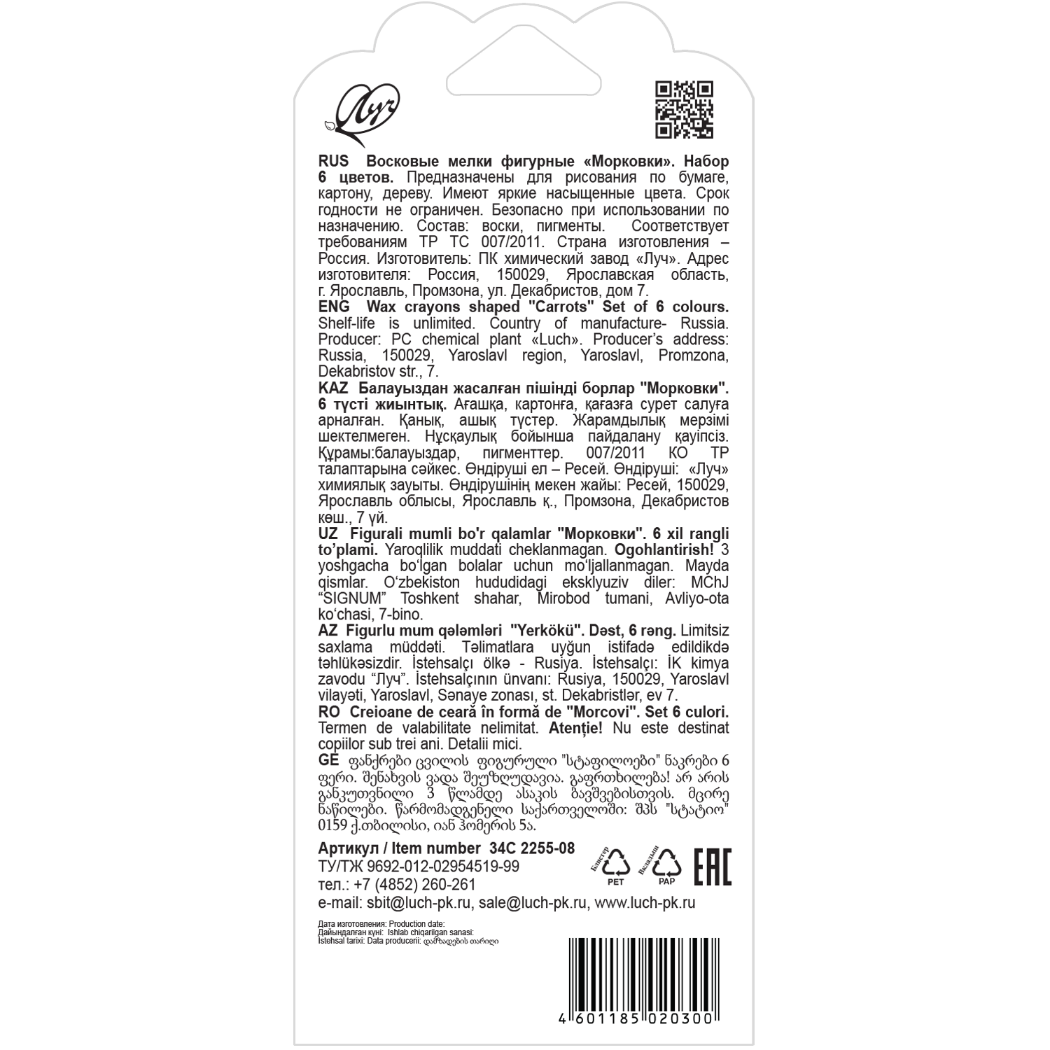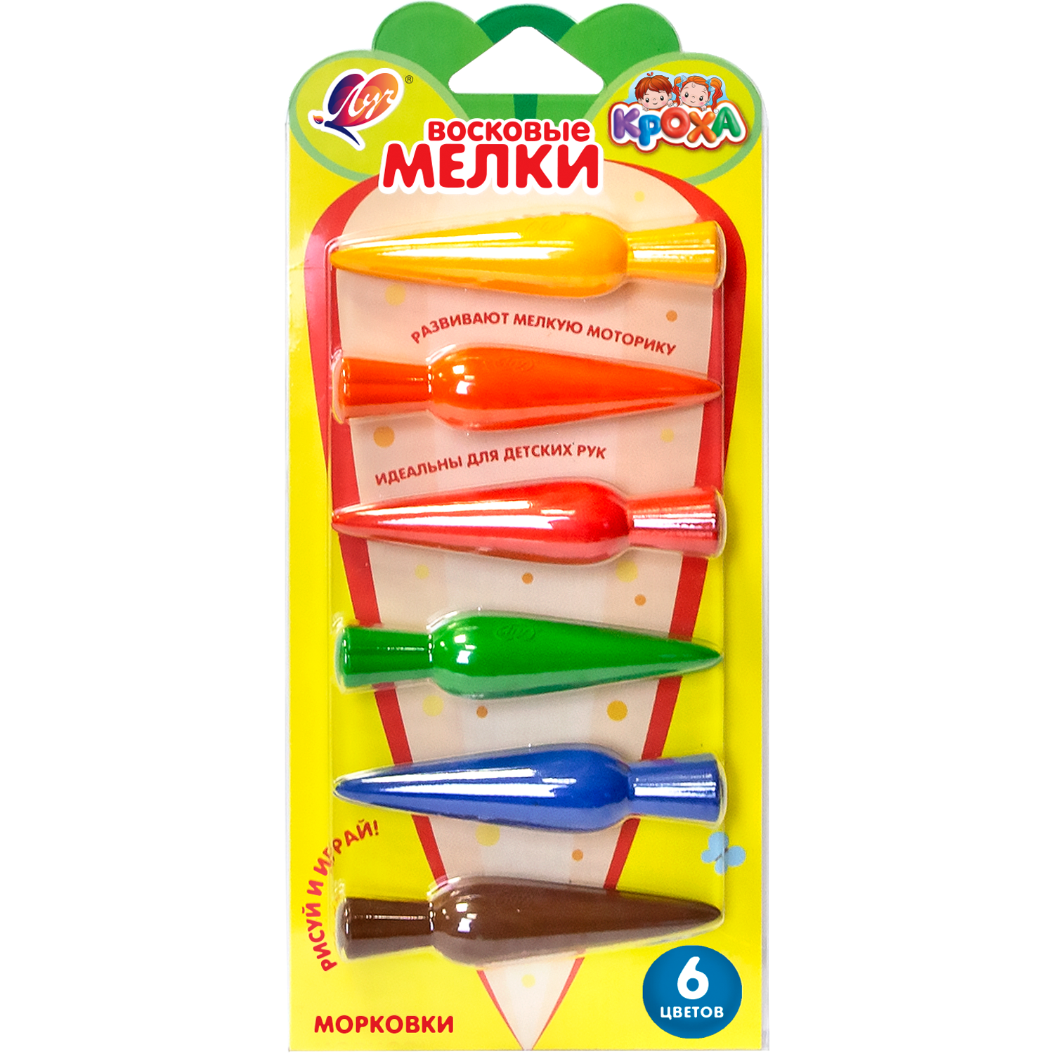 Восковые мелки Кроха, фигурные "Морковки", 6 цв. информация:
