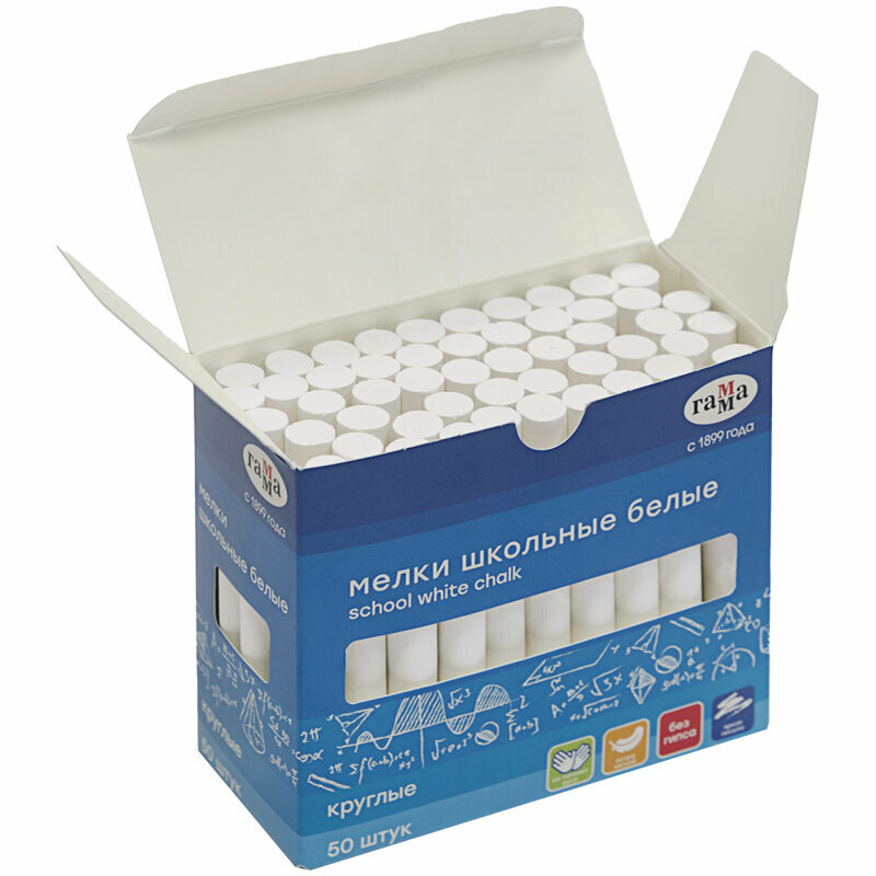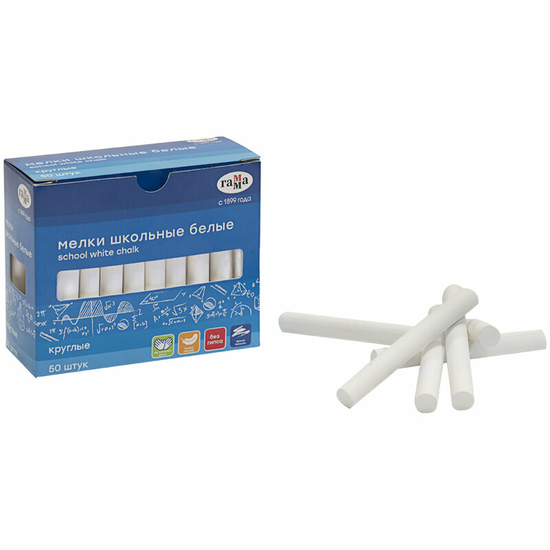 Отзывы на Мелки школьные Гамма, белые, 50шт, мягкие, круглые, картонная коробка, 2 штуки