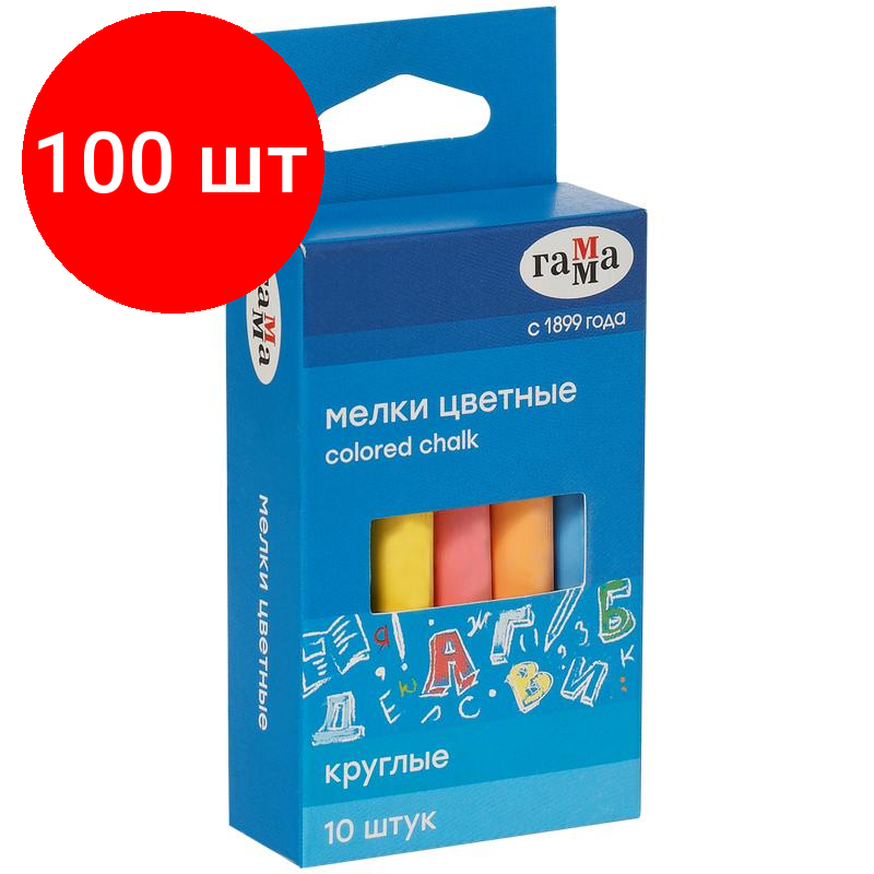 Комплект 100 наб, Мел школьный Гамма набор 10цв, мягкий, круглая форма, 0909193 информация: