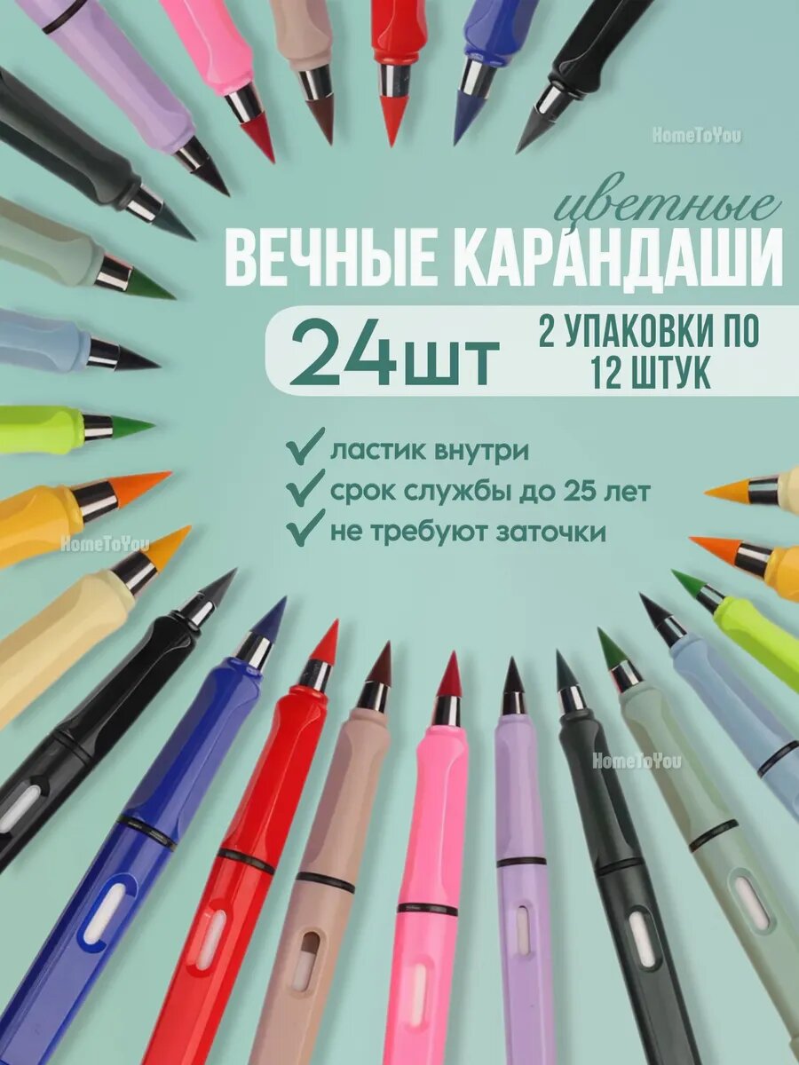 Вечные карандаши HomeToYou, с ластиком и твердым грифелем HB, 24 шт. информация: