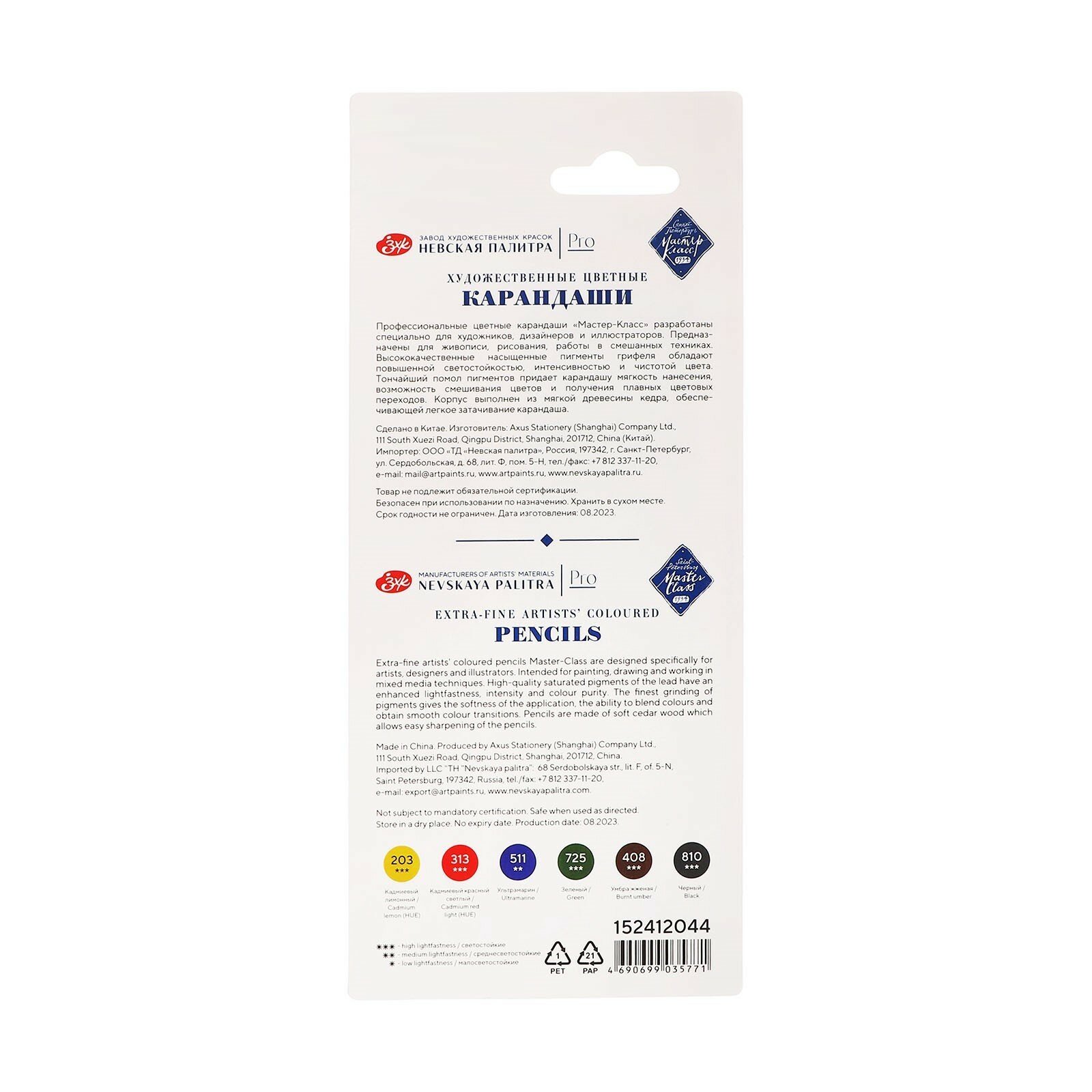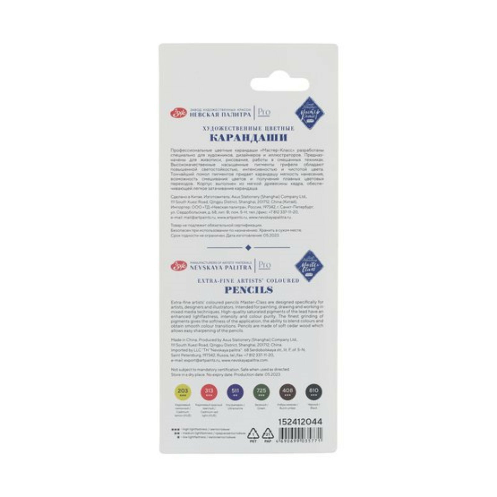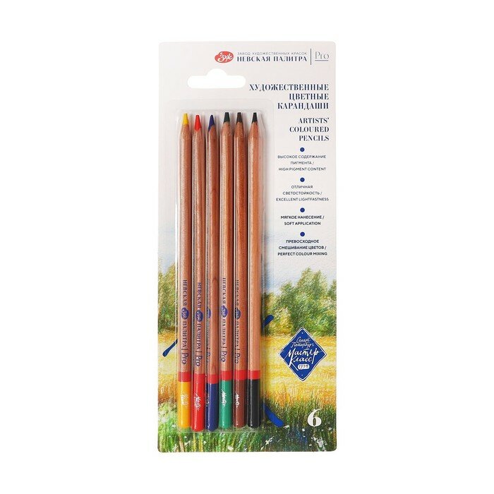 Карандаши цветные профессиональные Невская палитра Мастер-Класс, 6 цветов, в блистере 152412044 информация: