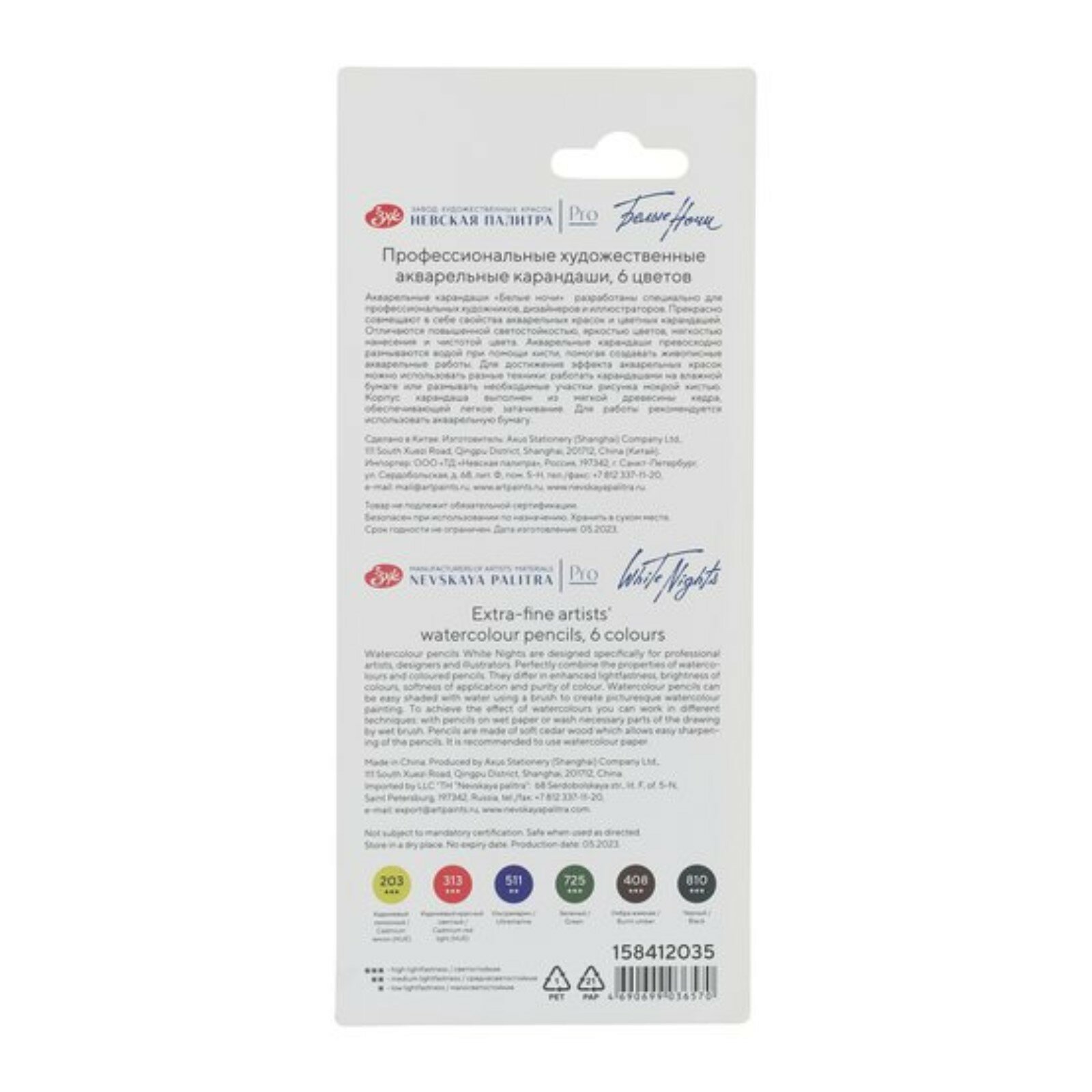 Карандаши цветные акварельные Невская палитра Белые ночи, 6 цветов, в блистере 158412035 информация: