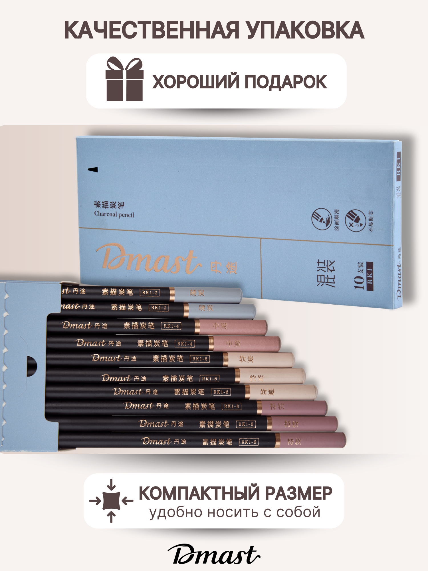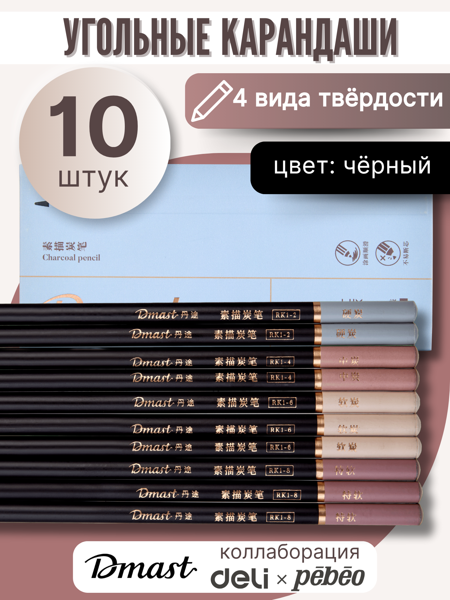 Отзывы на Угольные карандаши Dmast для рисования, 10 штук, круглые, дерево, черный цвет