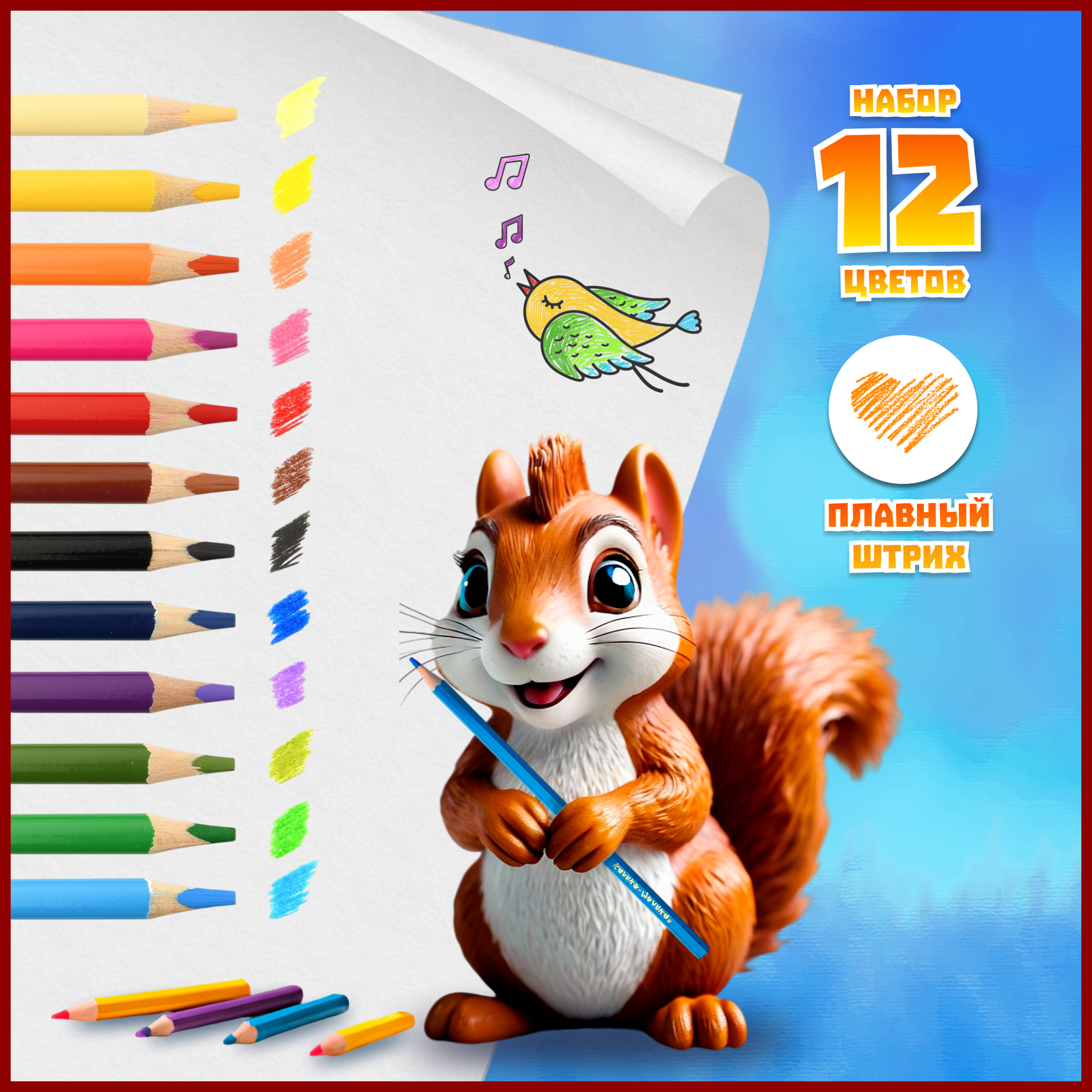 10 цен на Набор детских цветных карандашей для рисования Каляка-Маляка, 12 цветов, трехгранные, в коробке