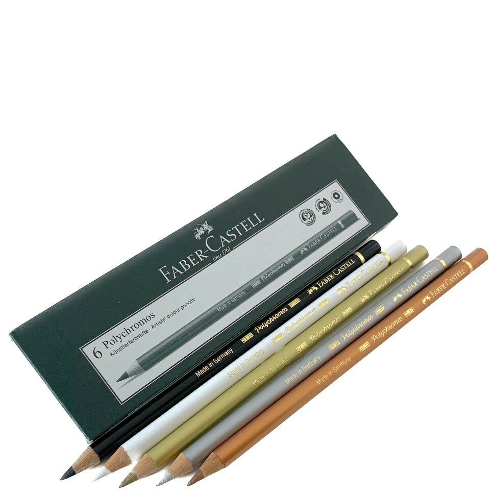 Отзывы на Карандаш № 101.199.250.251.252, комплект 5 штук, Металлик, белый и черный Polychromos