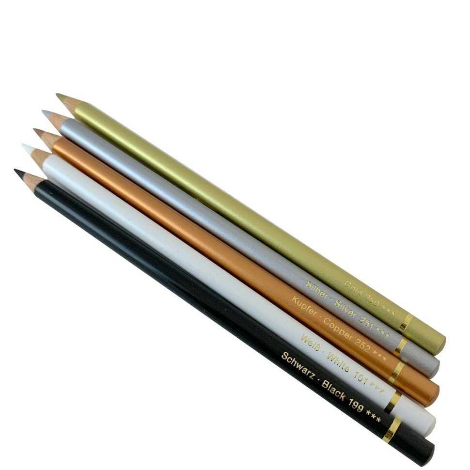 10 цен на Карандаш № 101.199.250.251.252, комплект 5 штук, Металлик, белый и черный Polychromos