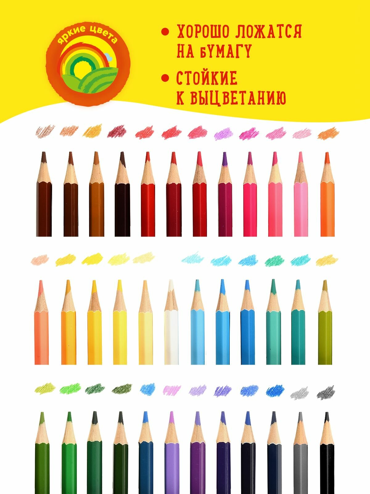 10 цен на Карандаши цветные мягкие для рисования детские Каляка-Маляка, набор 36 цветов, 2B, 4M