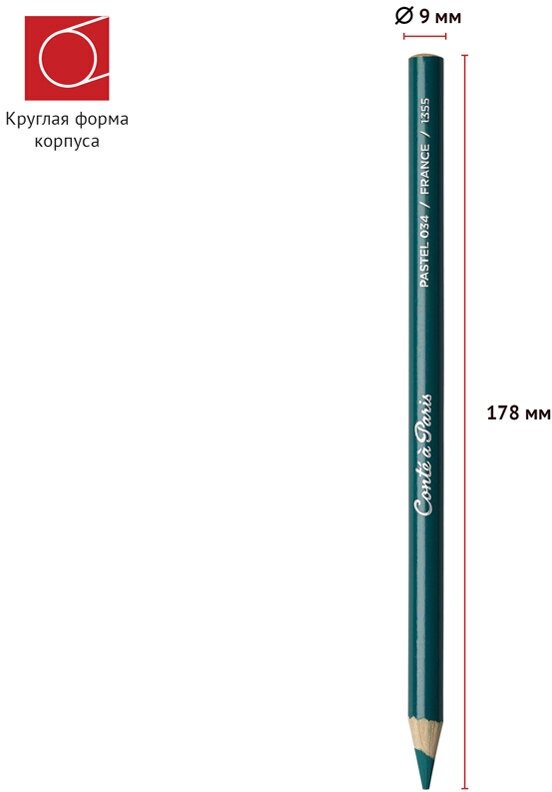 Пастельный карандаш для художников Conte a Paris, цвет 034, изумрудно-зеленый, круглый, 5 мм информация: