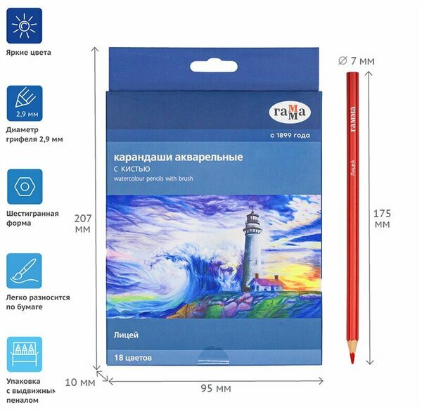 Гамма Карандаши акварельные Лицей, 18 цветов (221118_03) разноцветный информация: