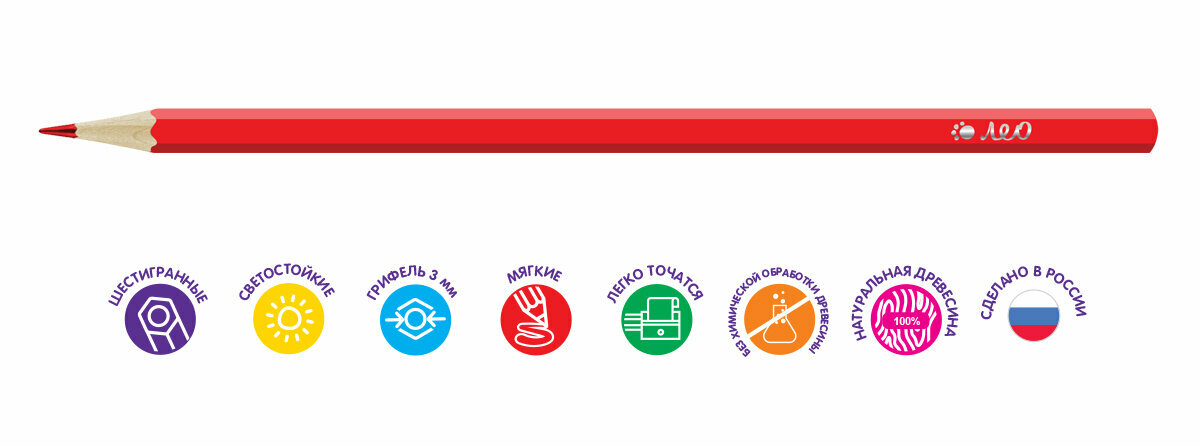 Набор цветных карандашей "Лео" "Учись" LNSCP-12 заточенные 12 цв. информация: