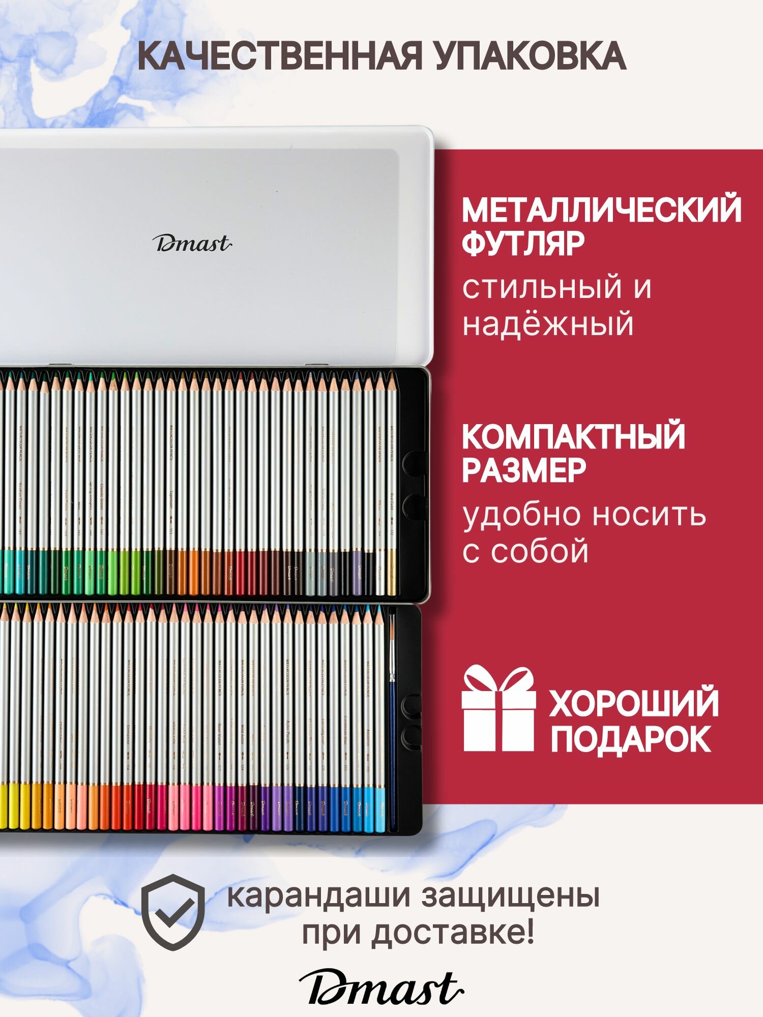 10 цен на Карандаши цветные акварельные для рисования 72 цвета Dmast в металлическом пенале