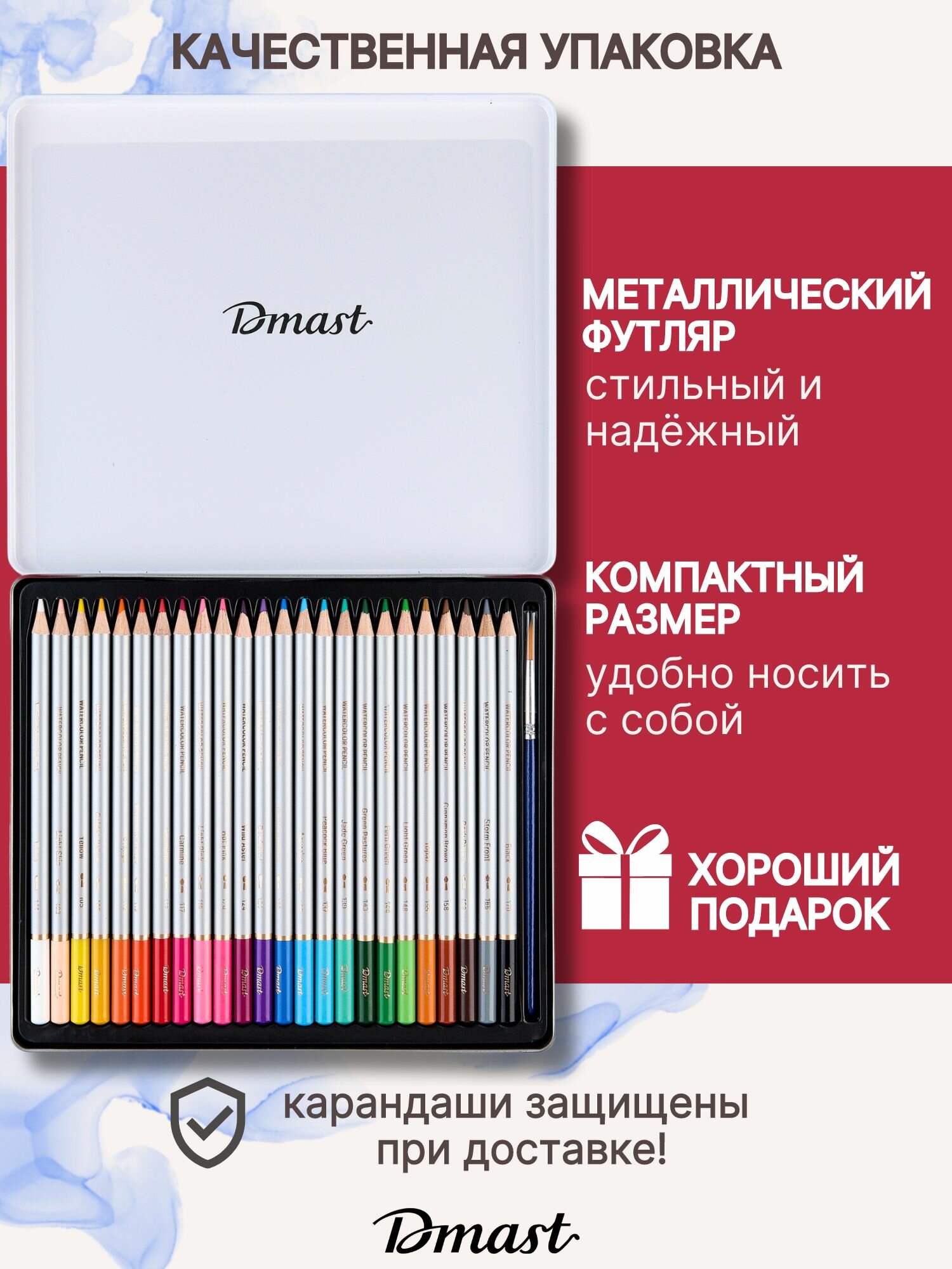 Карандаши цветные акварельные для рисования Dmast 24 цвета в металлическом пенале информация: