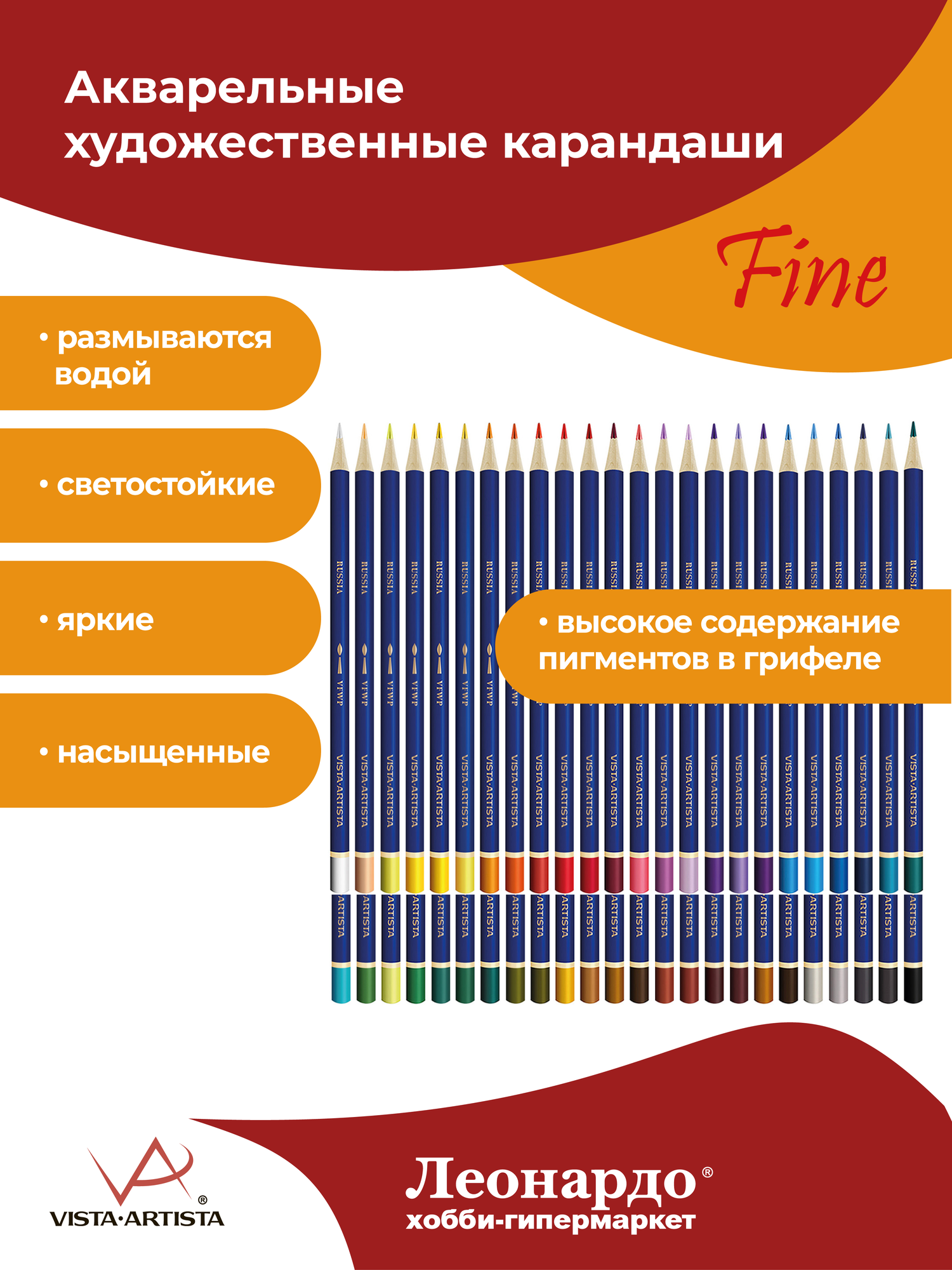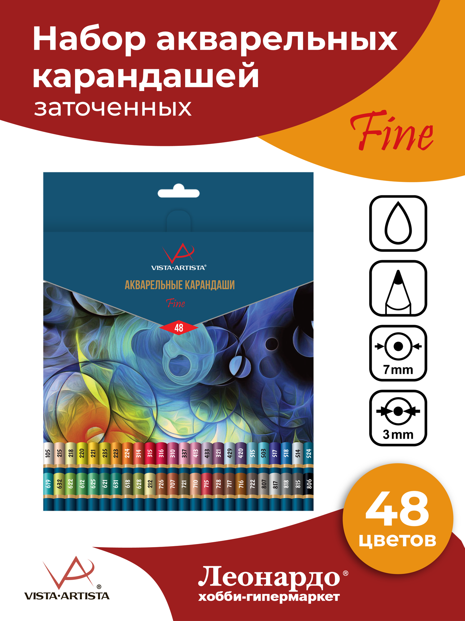 Набор акварельных карадашей "VISTA-ARTISTA" Fine VFWP-48 заточенные 48 цв. информация: