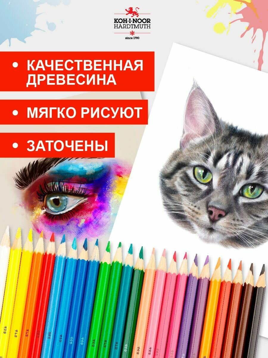 Карандаши цветные акварельные Koh-i-Noor, шестигранные, толщина грифеля 4 мм, набор 24 цвета информация: