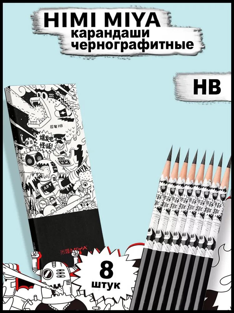 10 цен на Карандаши простые твердо-мягкие чернографитные HB, HIMI MIYA, набор для рисования 8 штук FC. QB. QB.029