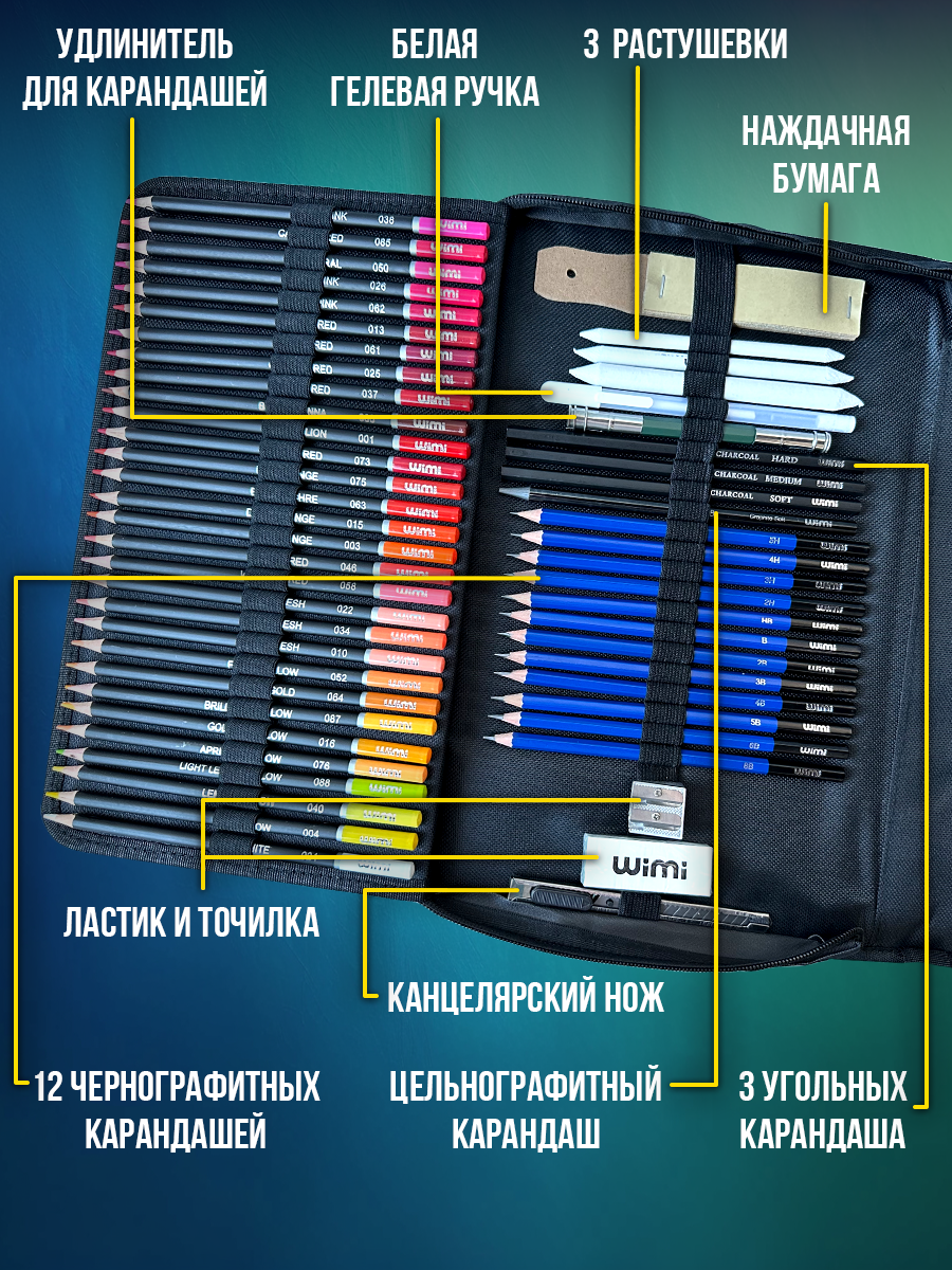 Карандаши цветные и простые WiMi, набор для рисования в пенале информация: