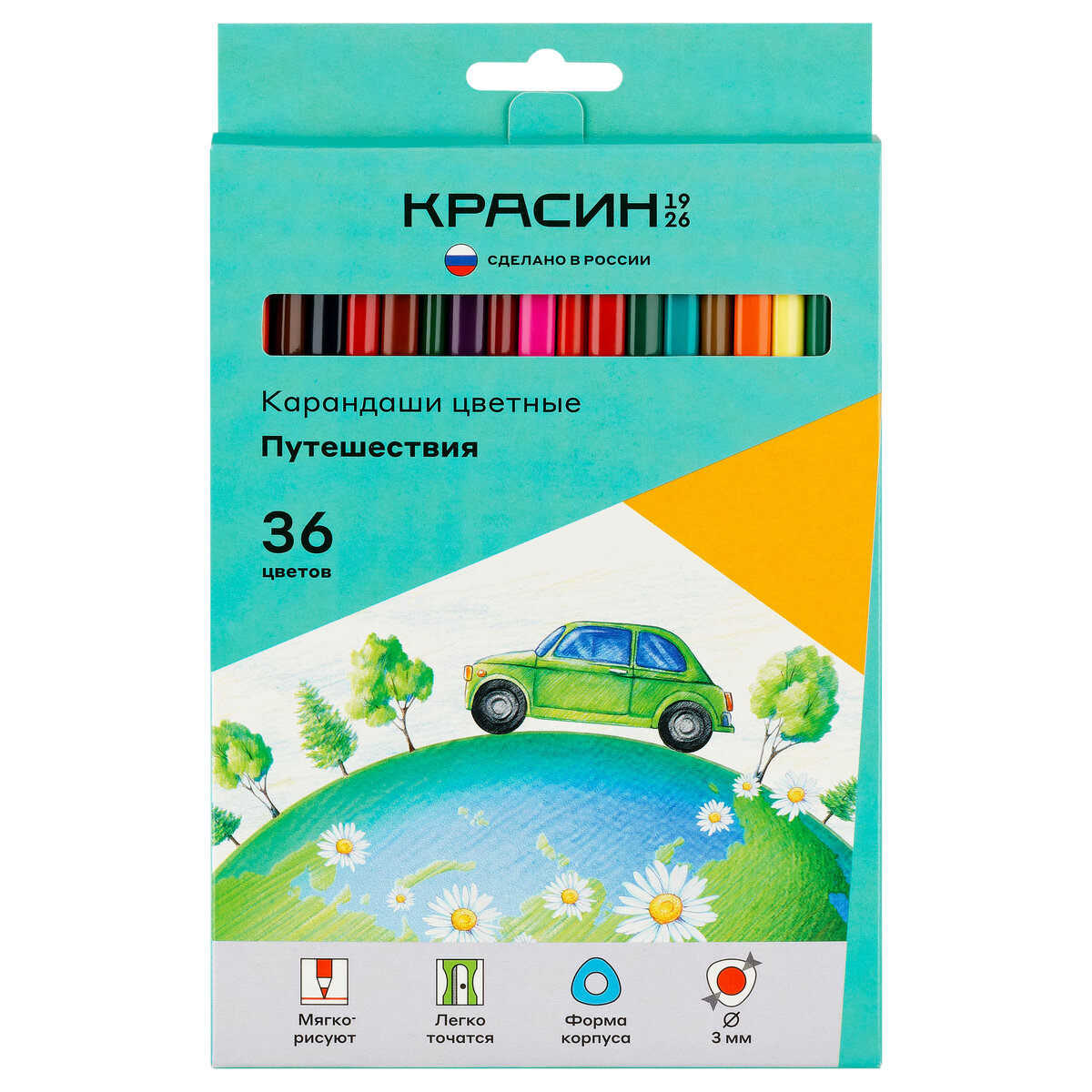 10 цен на Карандаши цветные Красин "Путешествия", 36цв, трехгран, заточен, картон, европодвес