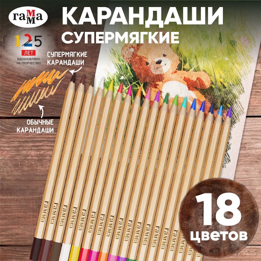 10 цен на Карандаши цветные Гамма "Мультики", 18цв, супермягкие, увелич. диаметр грифеля 4,0мм, заточен.