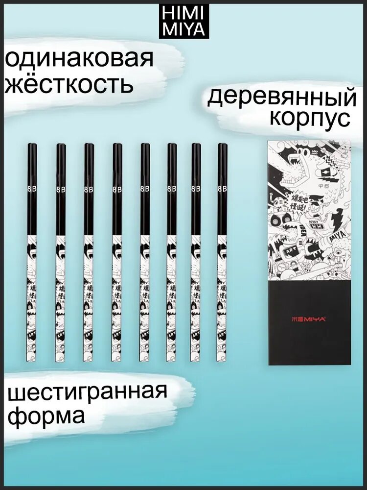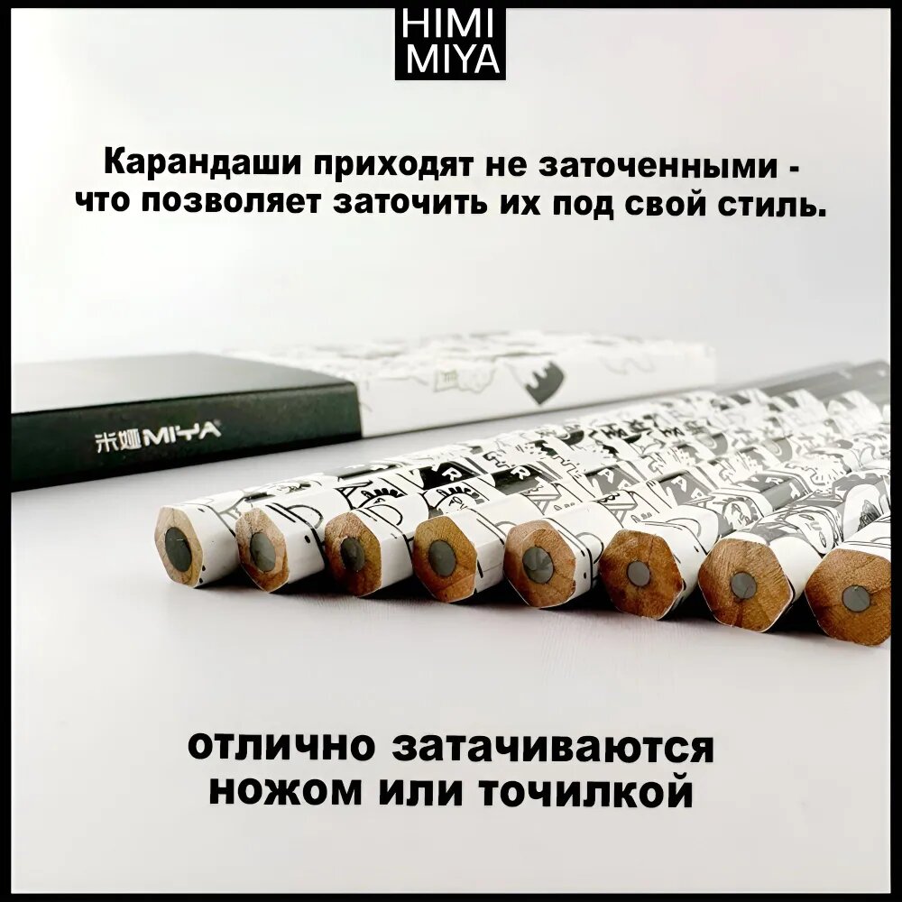Отзывы на Карандаши HIMI MIYA простые чернографитные : 2Н, НВ, 2В, 4В, 6В, 8В, 10В + Угольный карандаш 8 штук BQB50