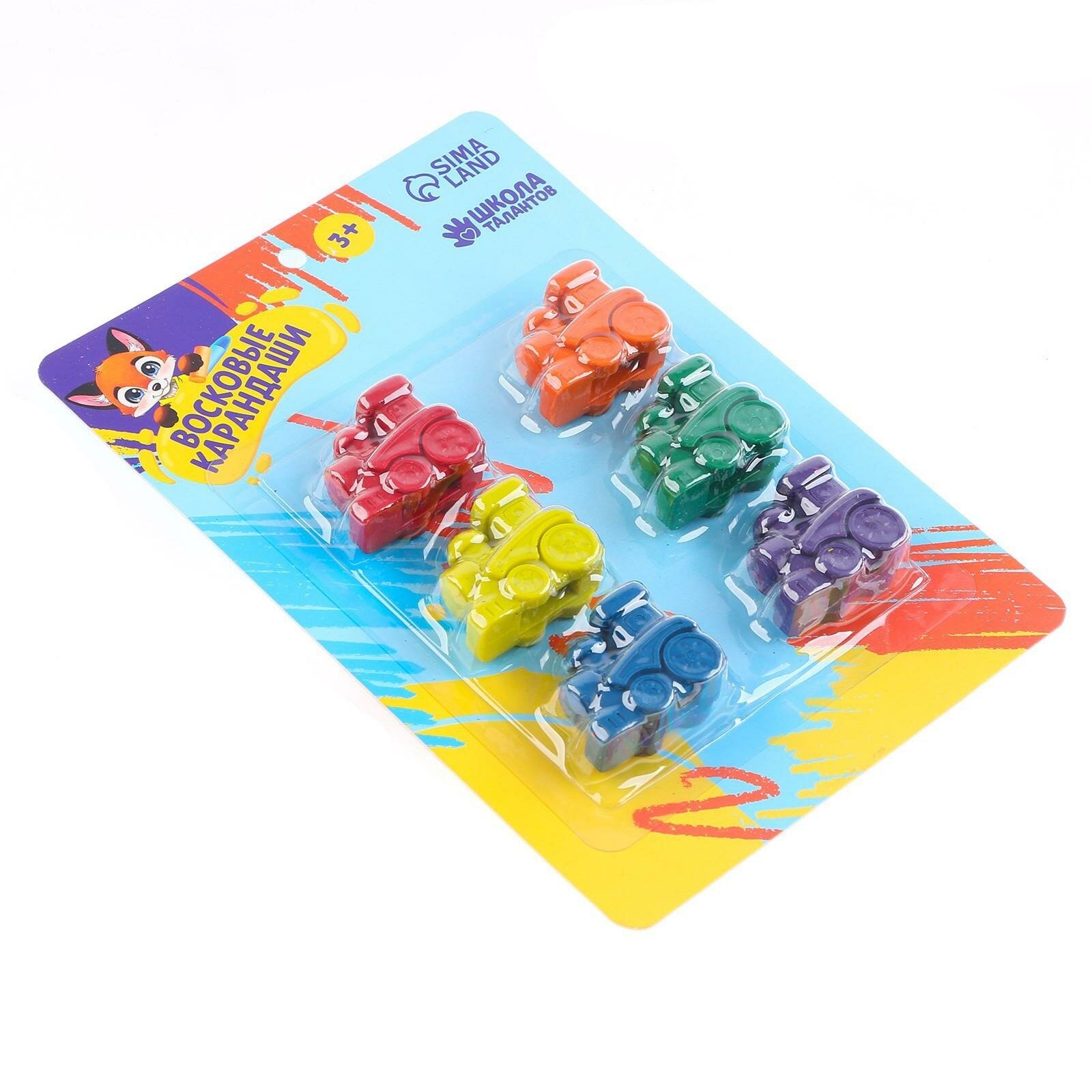 Карандаши восковые "Паровоз", набор 6 цветов, фигурные, Школа талантов информация: