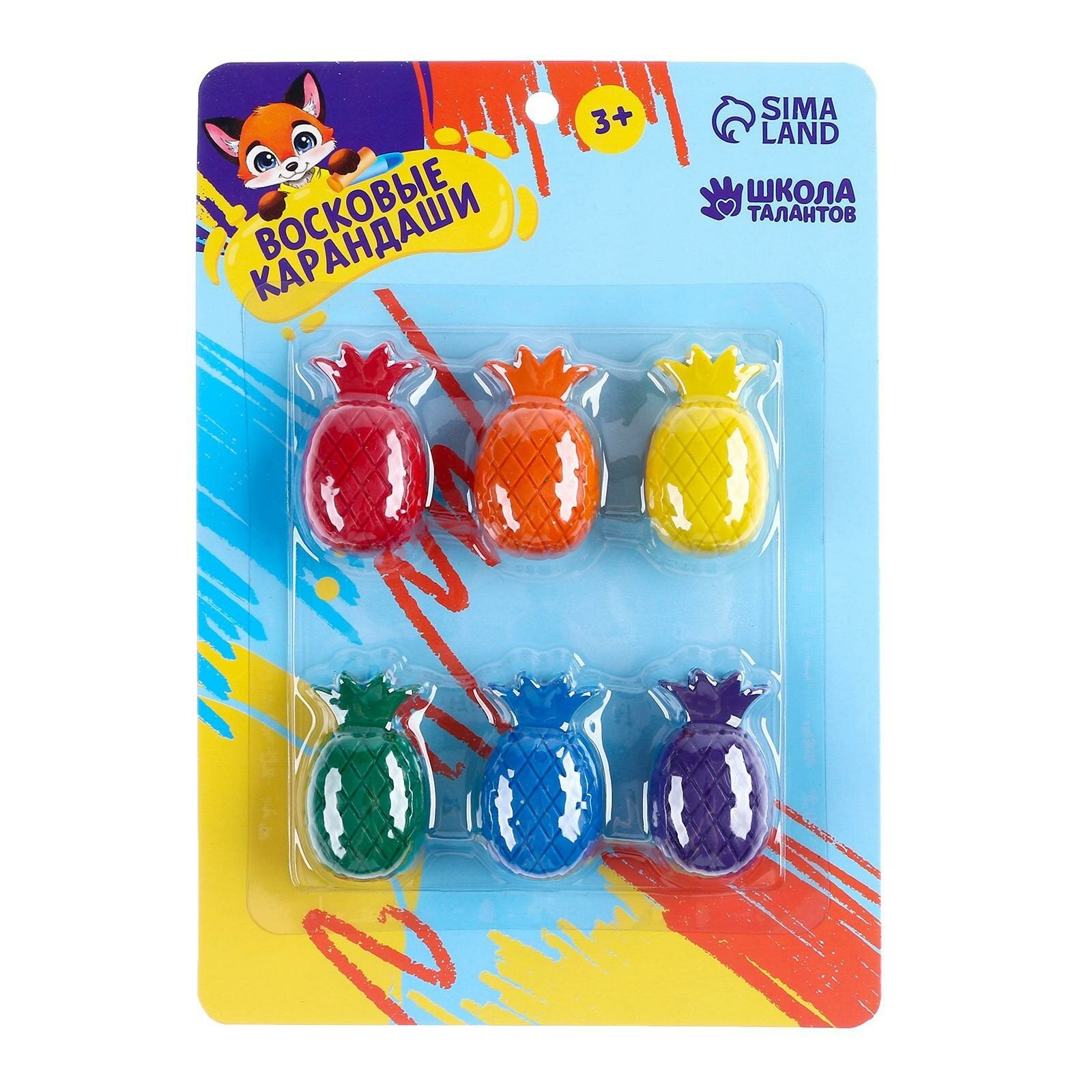 10 цен на Карандаши восковые "Ананасы", набор 6 цветов, фигурные, Школа талантов
