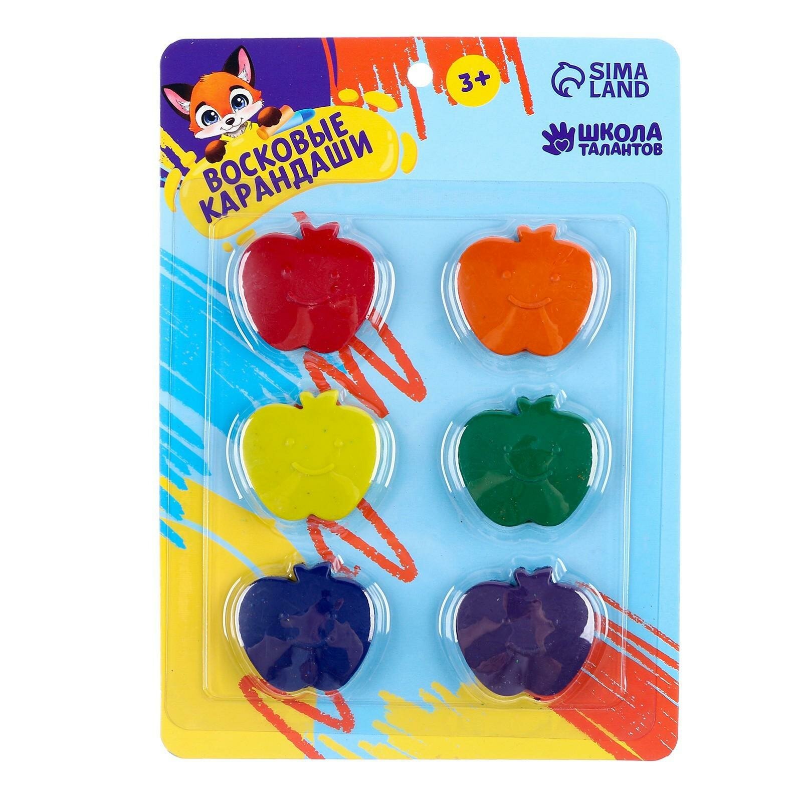 Карандаши восковые "Яблоки", набор 6 цветов, фигурные, Школа талантов информация: