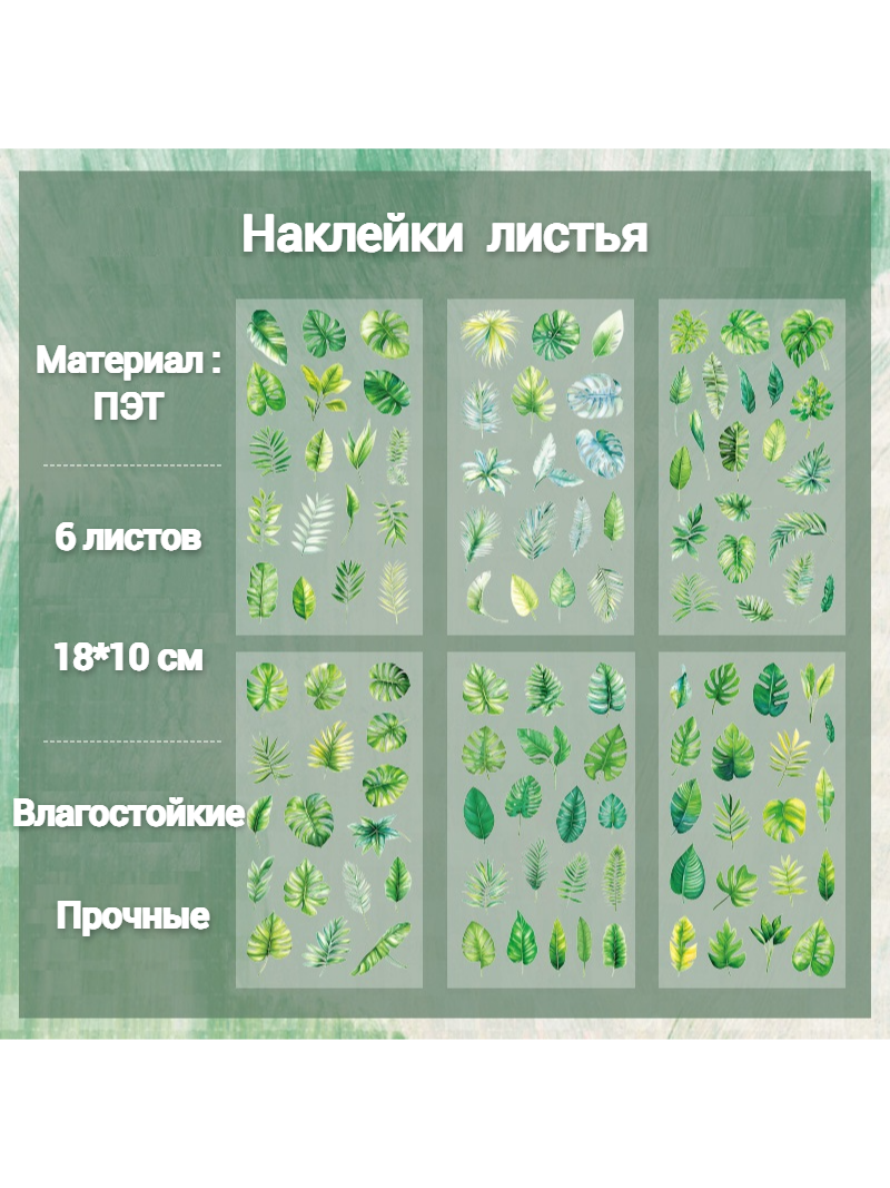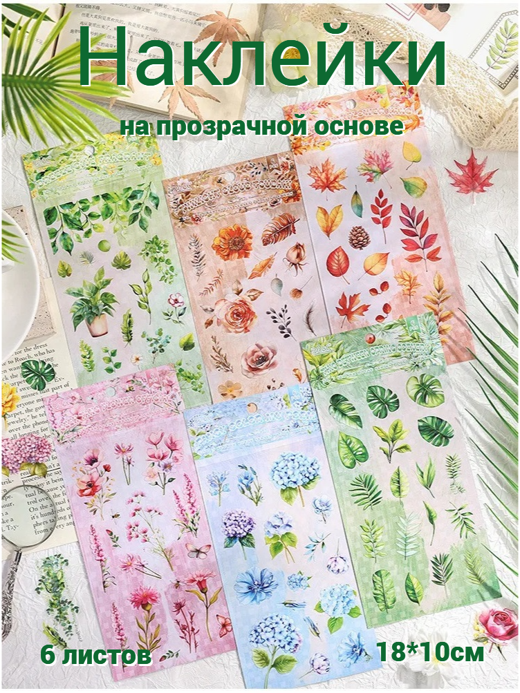 Отзывы на Набор наклеек "Цветы и листья", 18x10см, 6 шт, ПЭТ, самоклеящиеся, для скрапбукинга