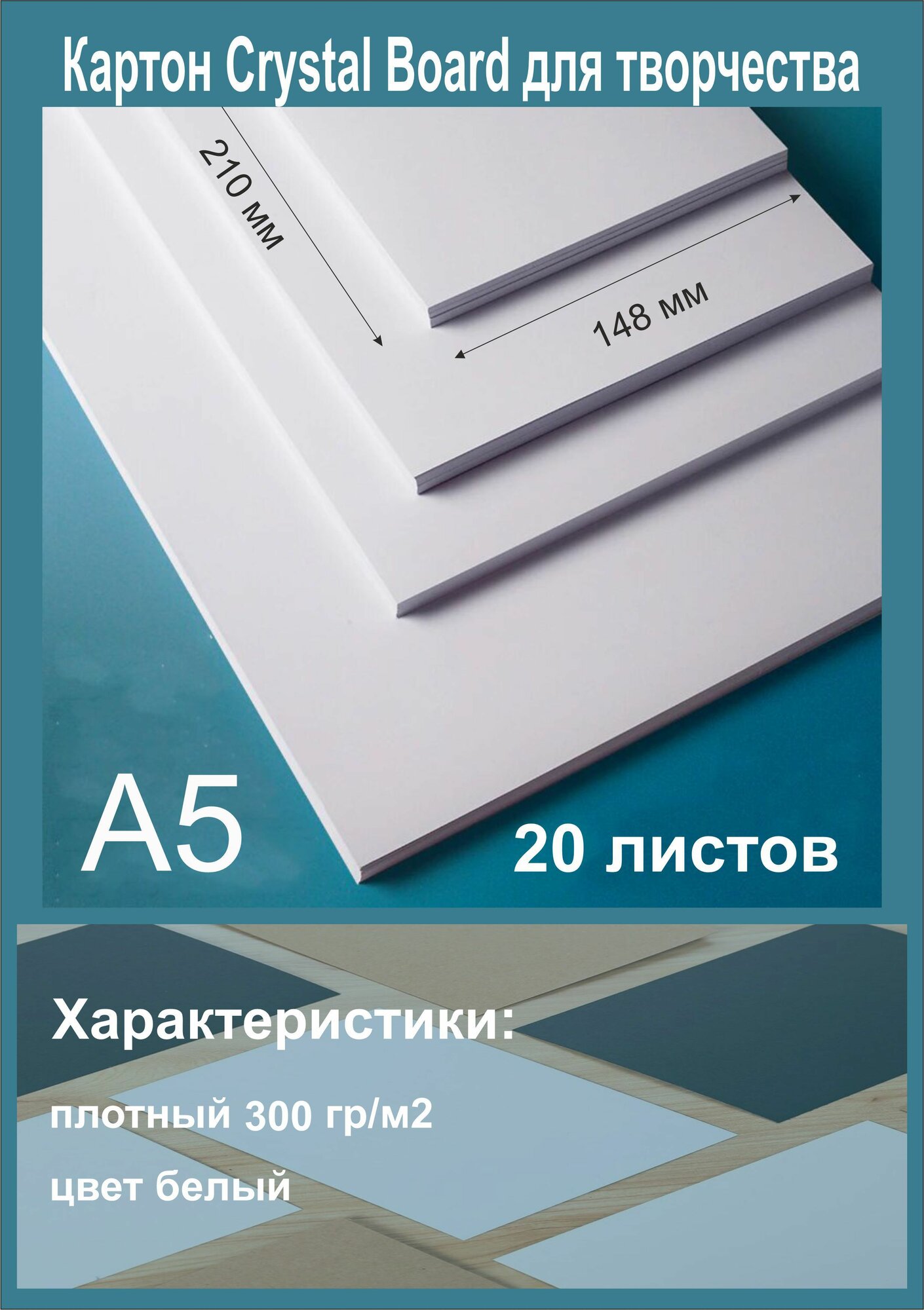 Картон ПитерКард "Cristal Board", A5, 20 л, двусторонний, мелованный, белый информация: