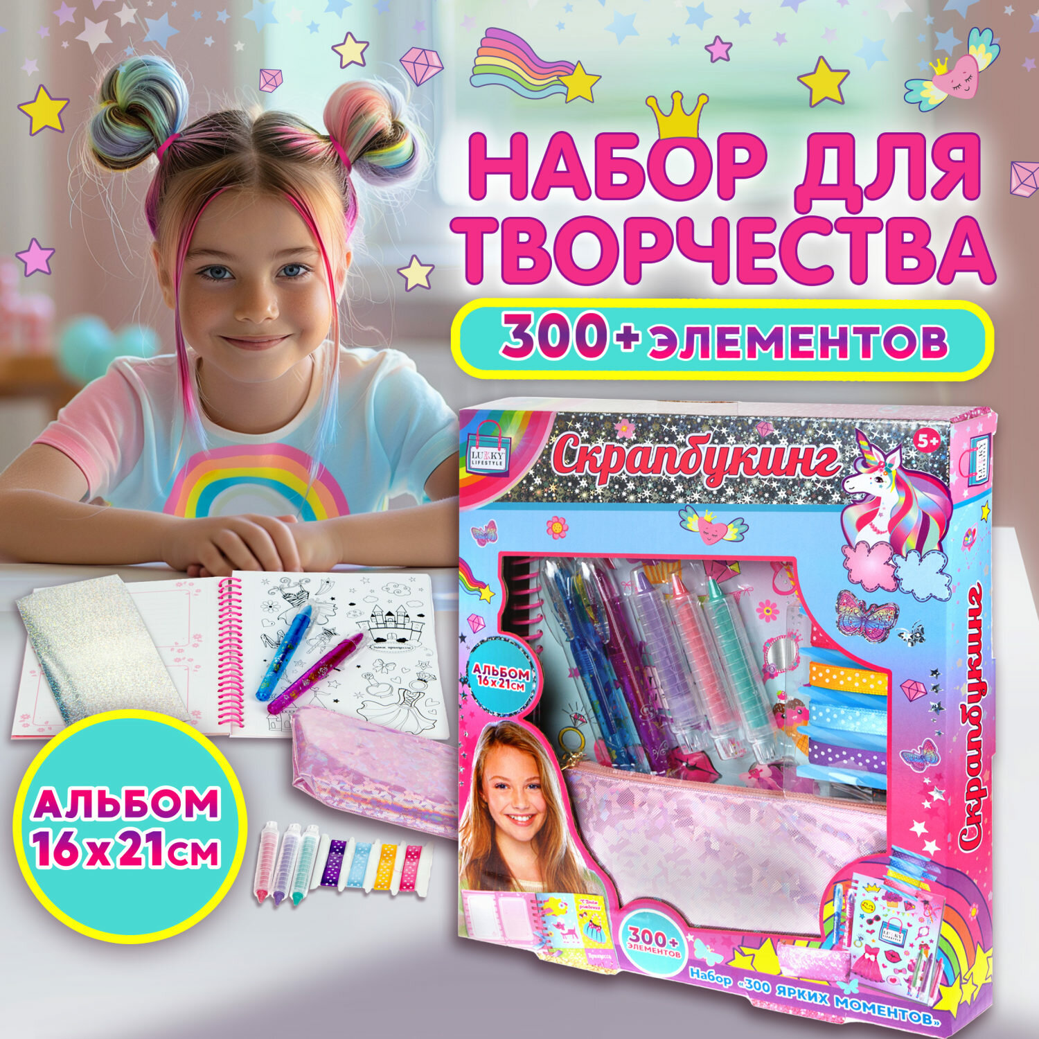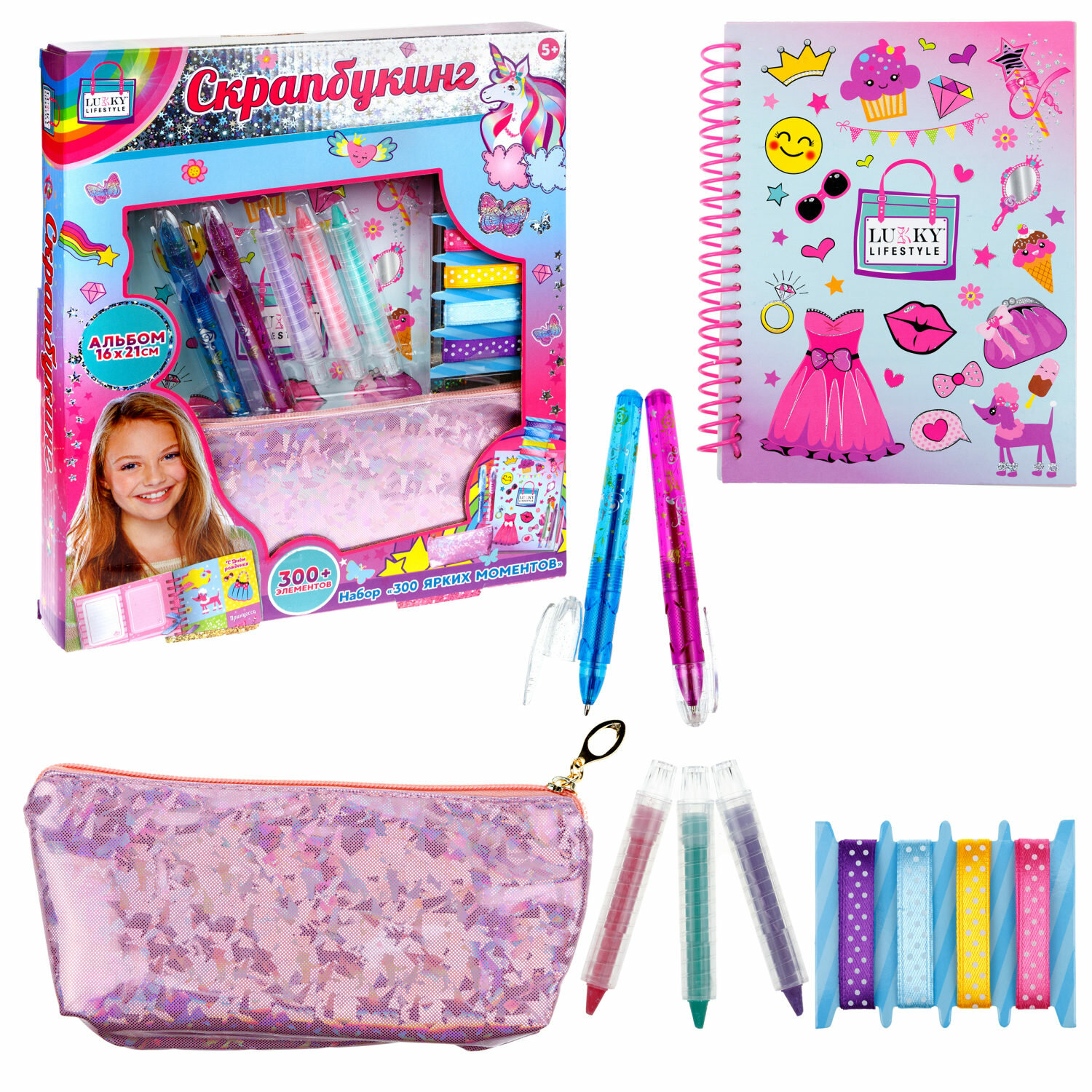 Набор для создания альбома LUKKY LIFESTYLE 300 ярких моментов, с пеналом школьным, скетчбук для девочек, в подарочной коробке 25x29x4 см информация: