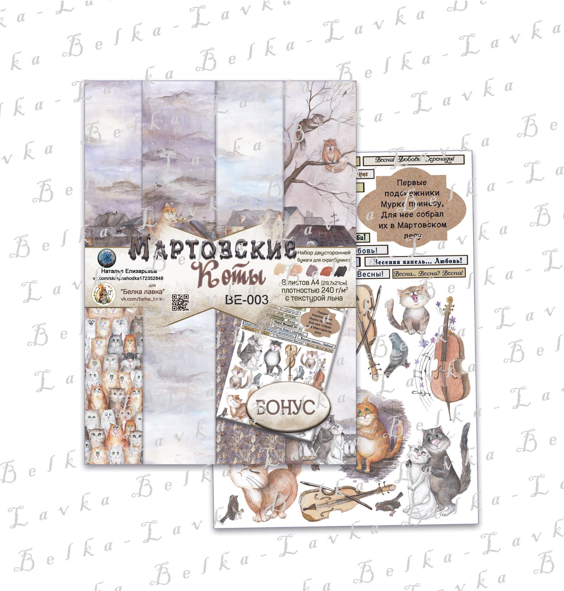 Набор бумаги для скрапбукинга "Мартовские коты" от Belka Lavka информация: