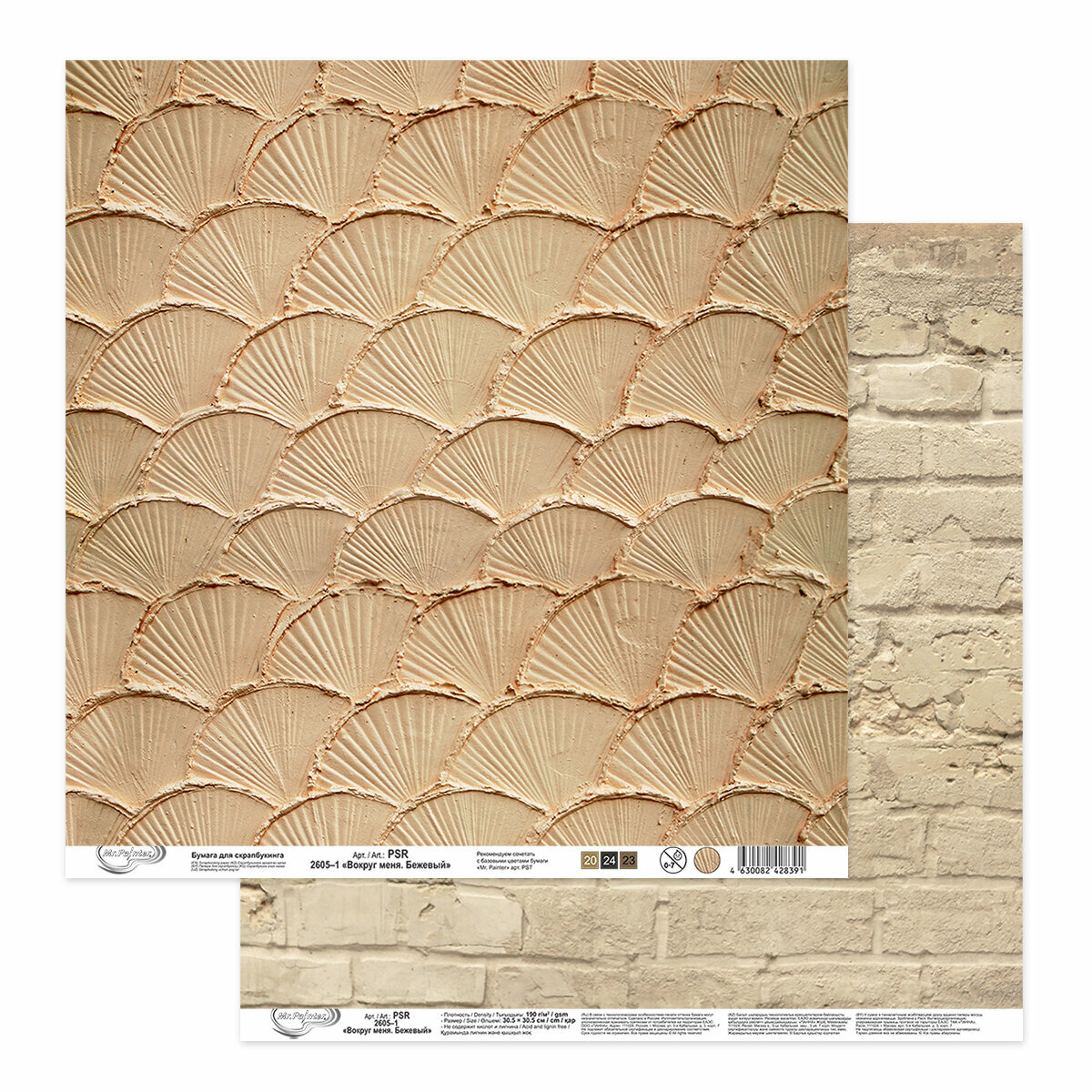 Бумага для скрапбукинга "Mr.Painter" PSR 2605 "Вокруг меня. Бежевый" 190 г/кв. м 30.5 x 30.5 см 1 информация: