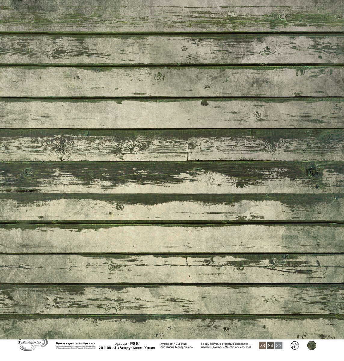 Бумага для скрапбукинга "Mr.Painter" PSR 201106 "Вокруг меня. Хаки" 190 г/кв. м 30.5 x 30.5 см 4 информация: